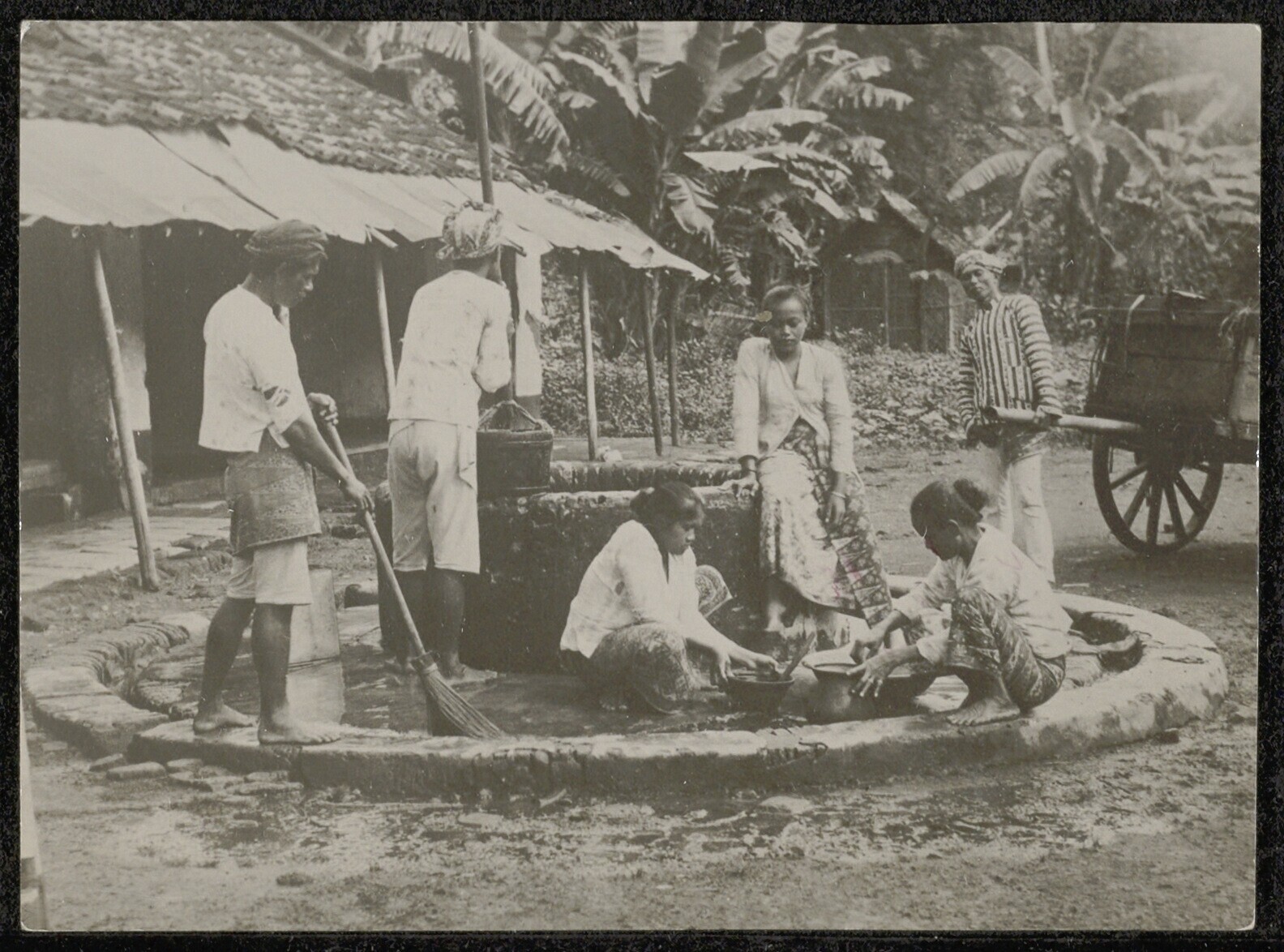 Bezigheden bij een waterput van een woonhuis in Batavia