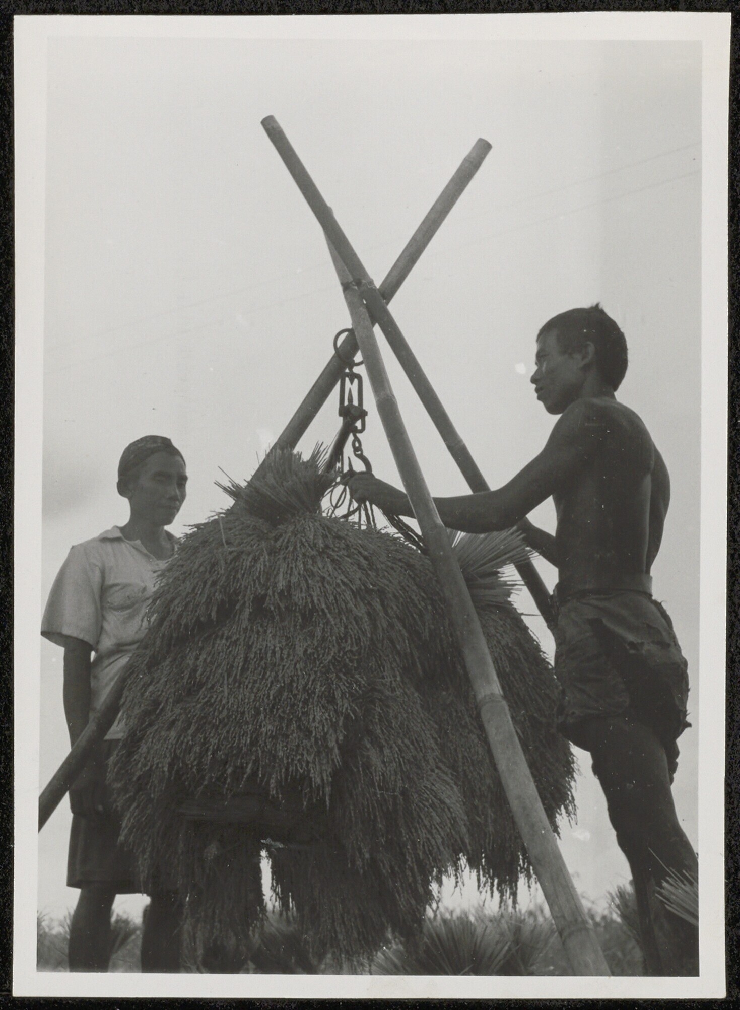 Portret van een groep handwerkers uit Nederlands-Ind...