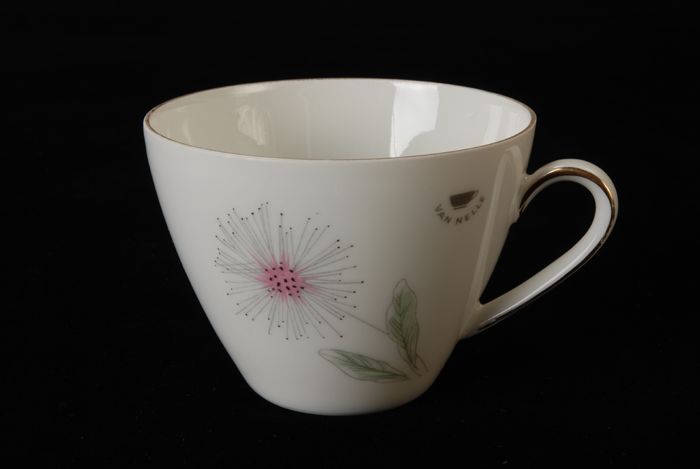 Koffiekop voor Van Nelle met roze en gele bloem, dee...
