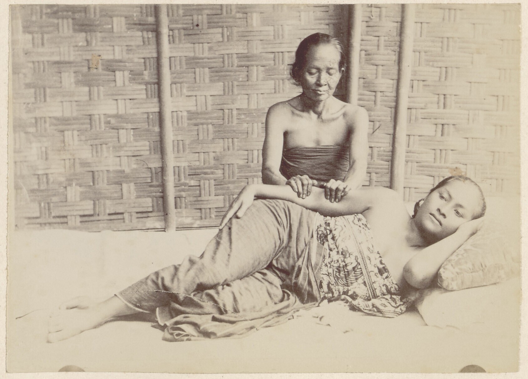 Studioportret van twee Javaanse vrouwen tijdens het ...