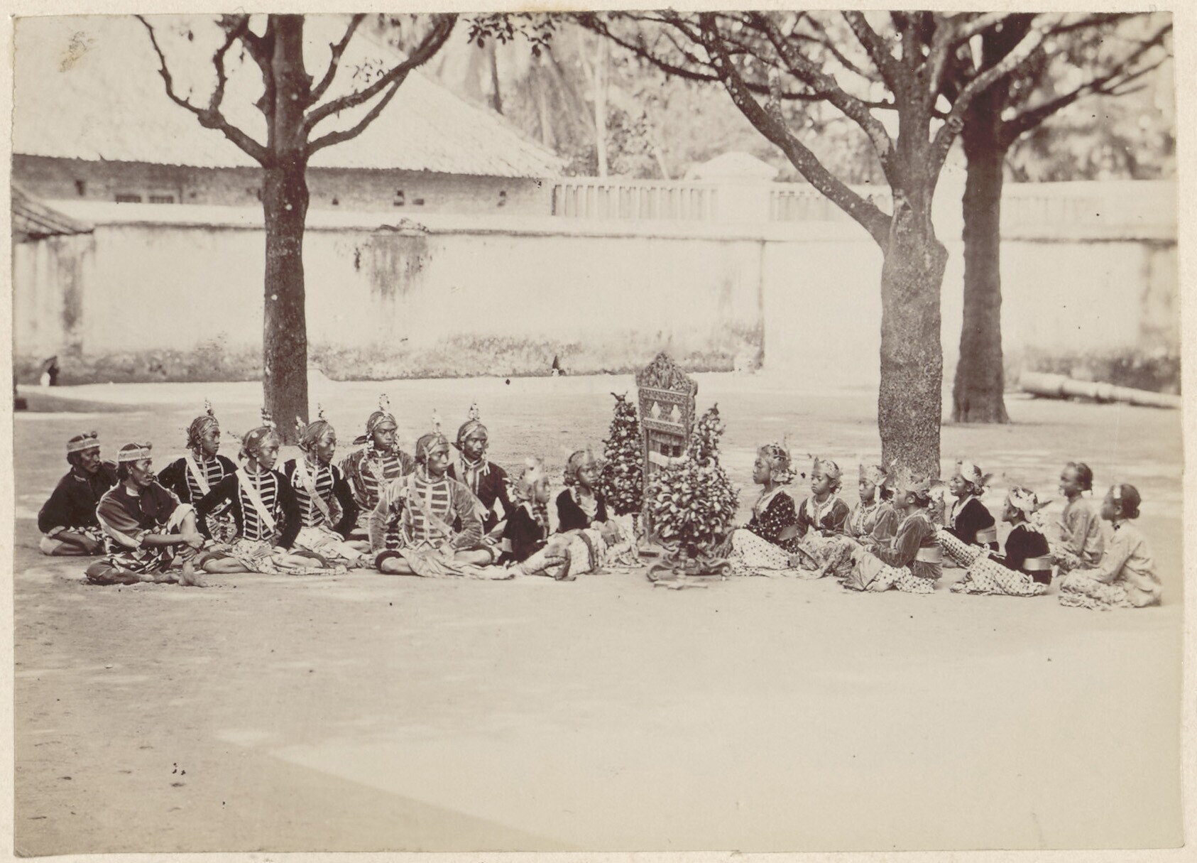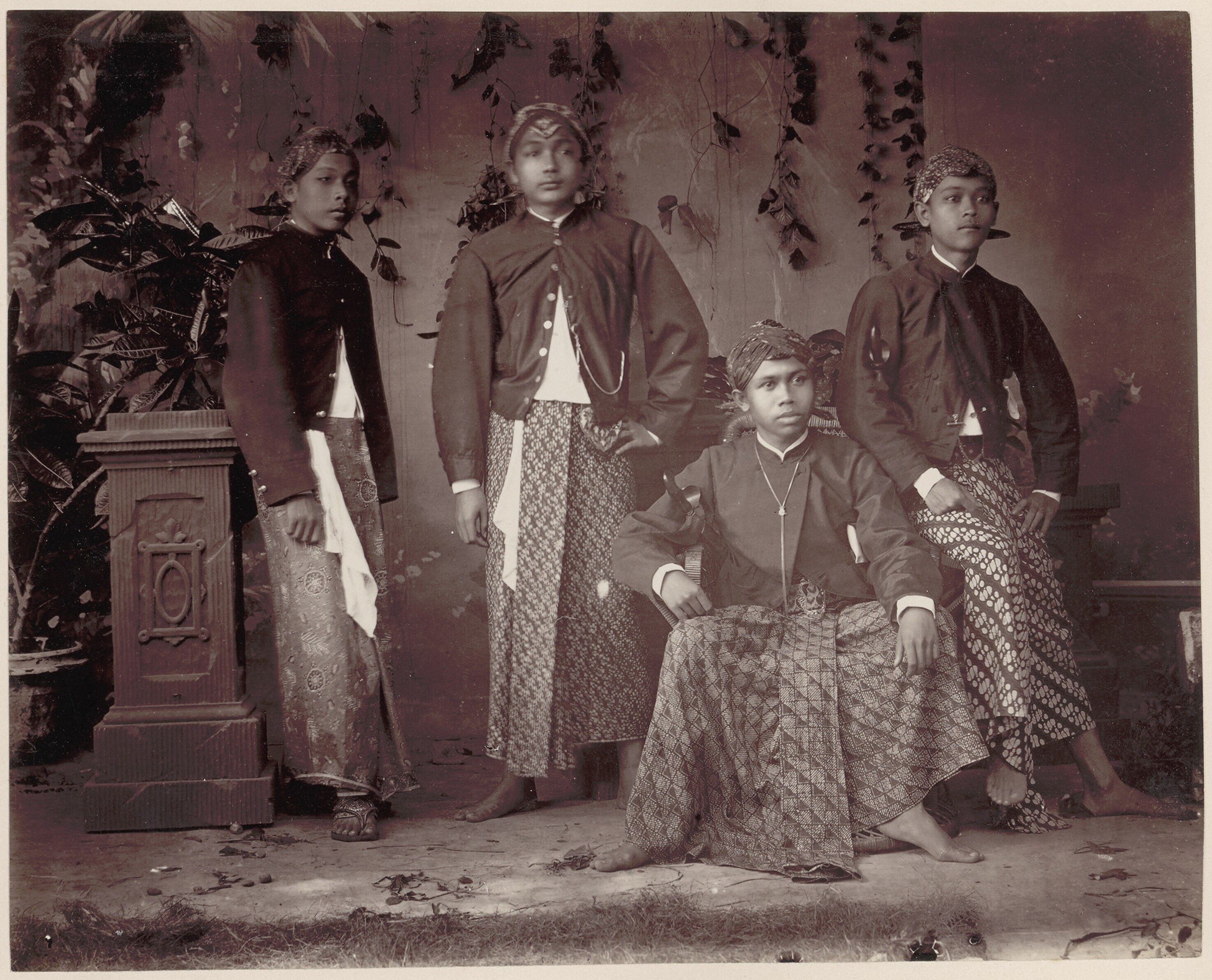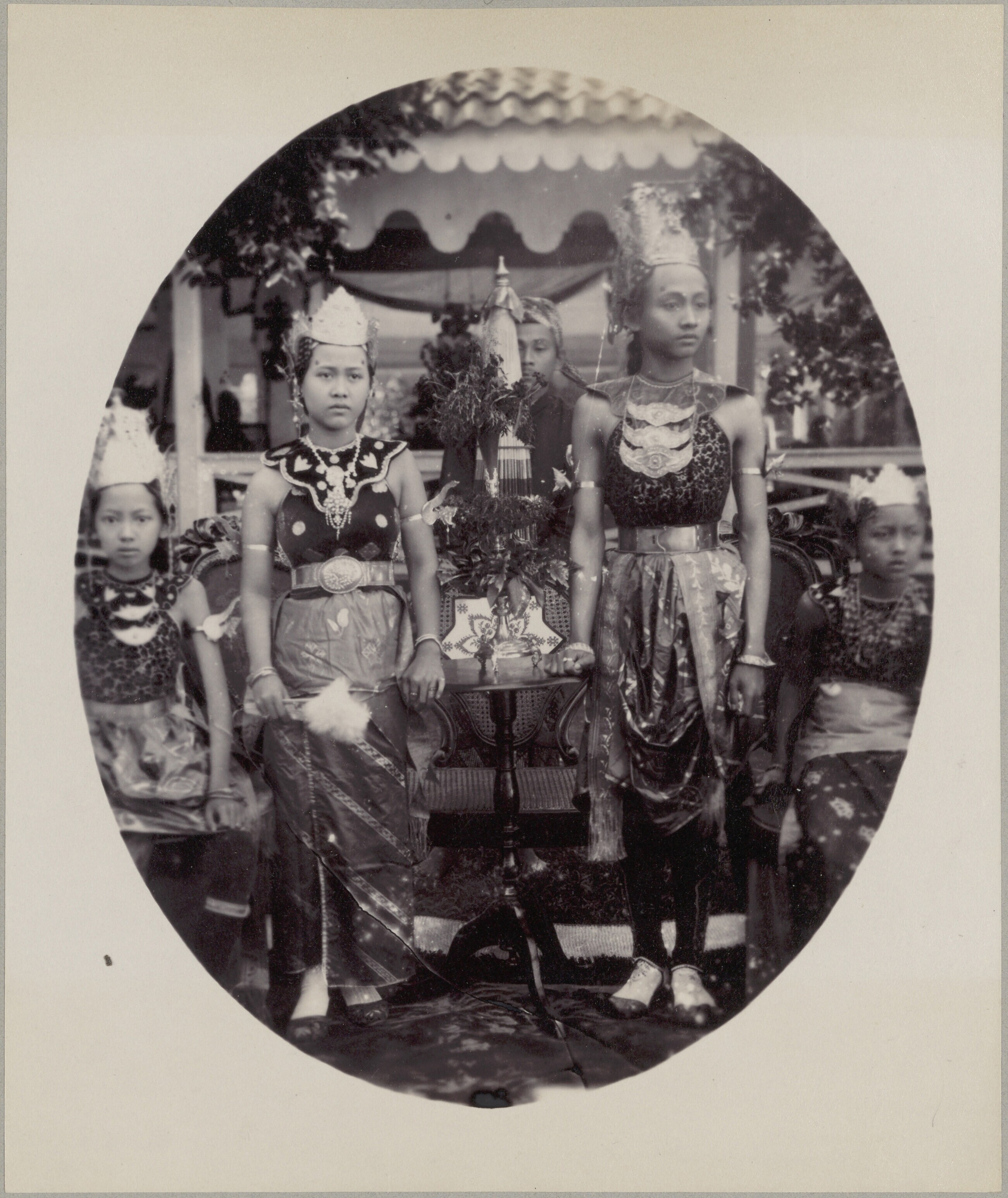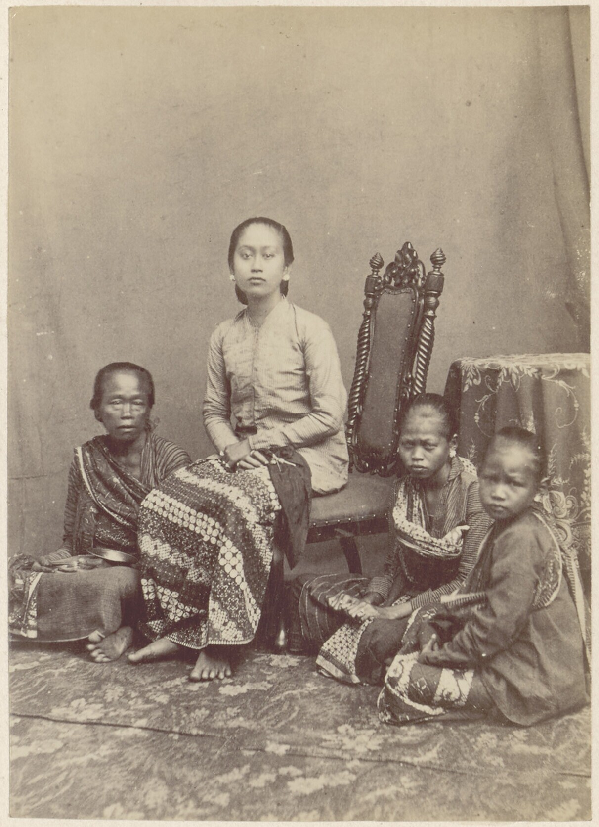 Studioportret van drie Javaanse vrouwen tijdens het ...