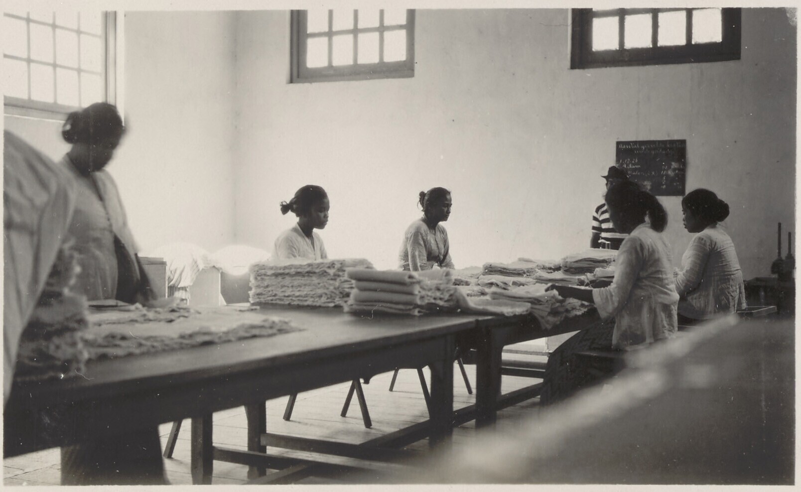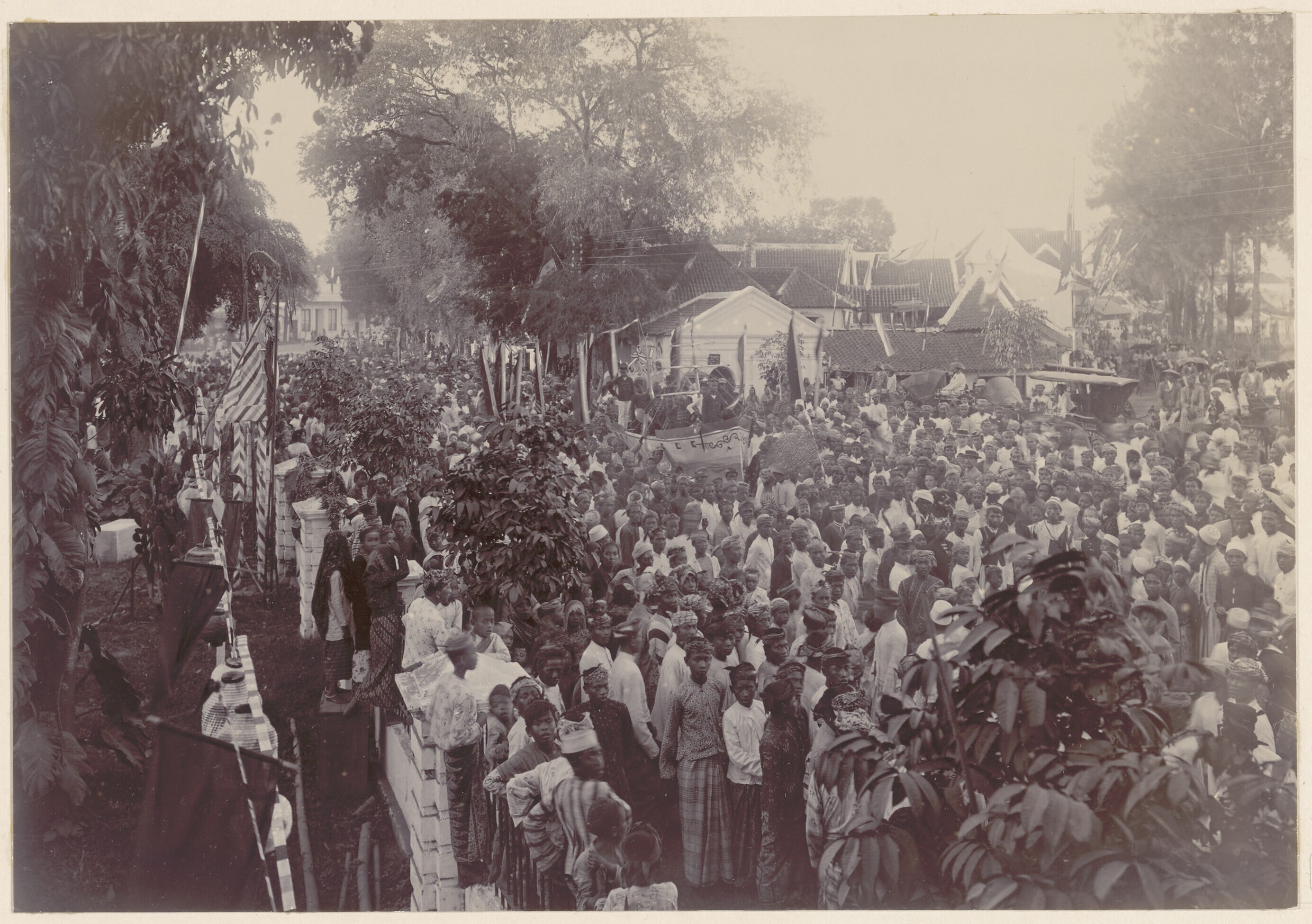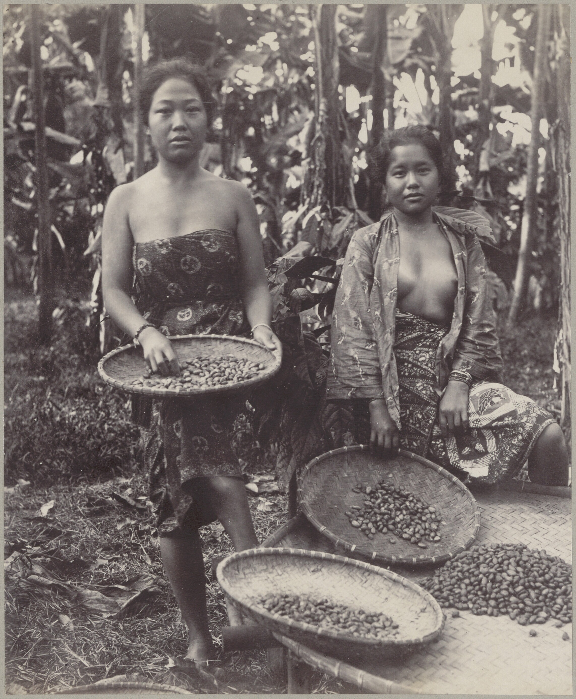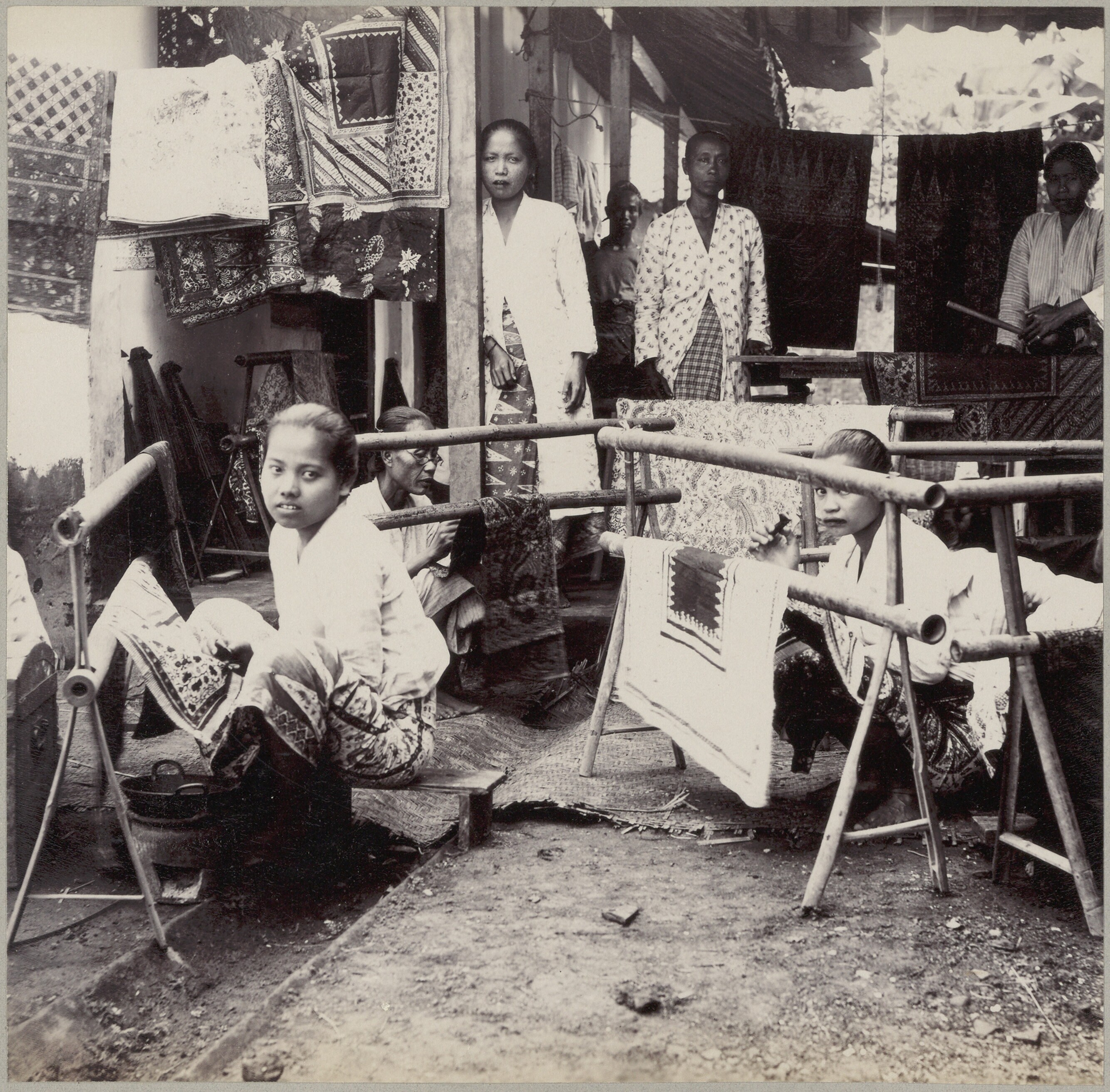 Studioportret van drie Javaanse vrouwen tijdens het ...