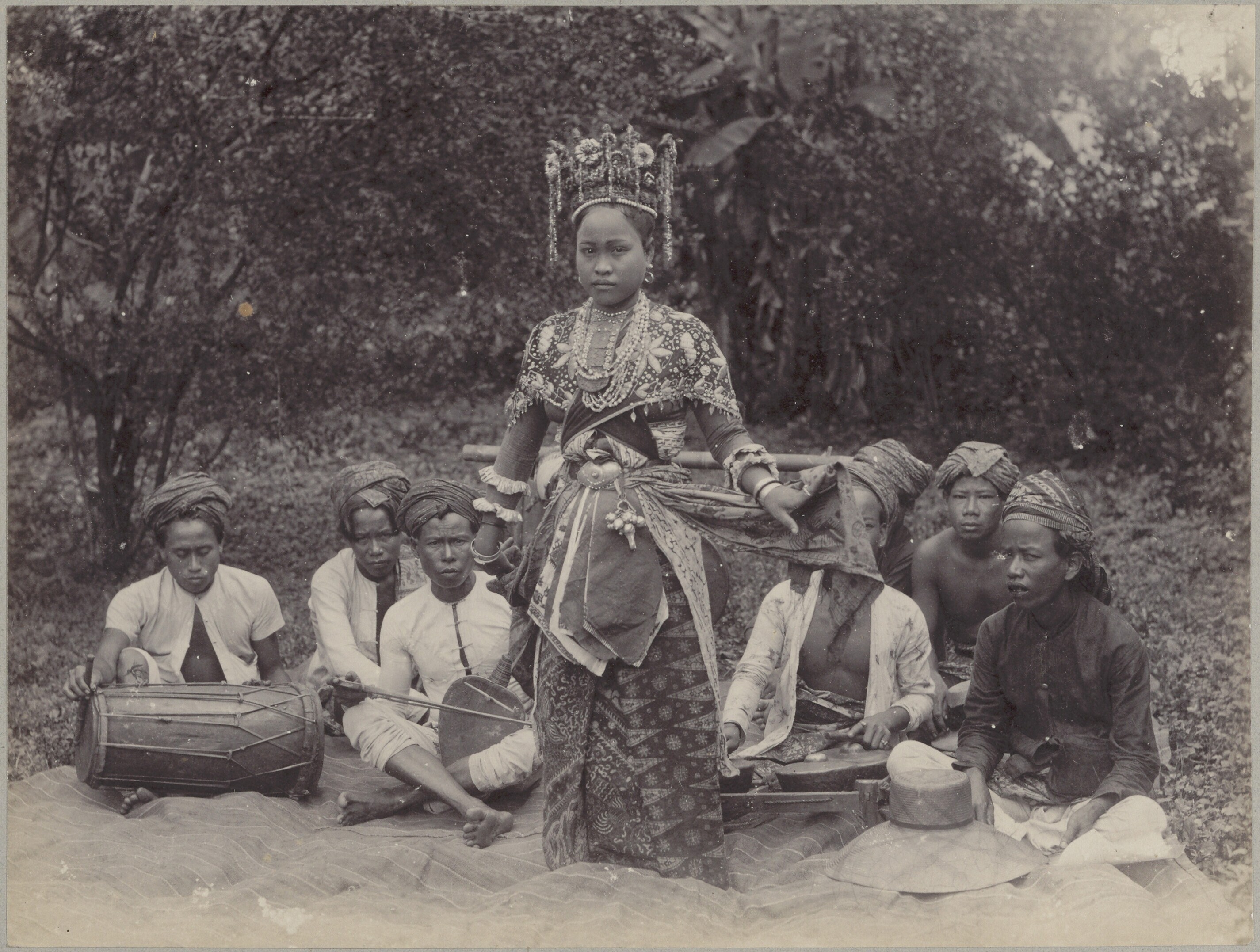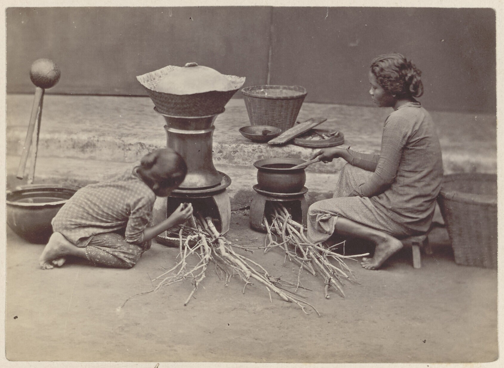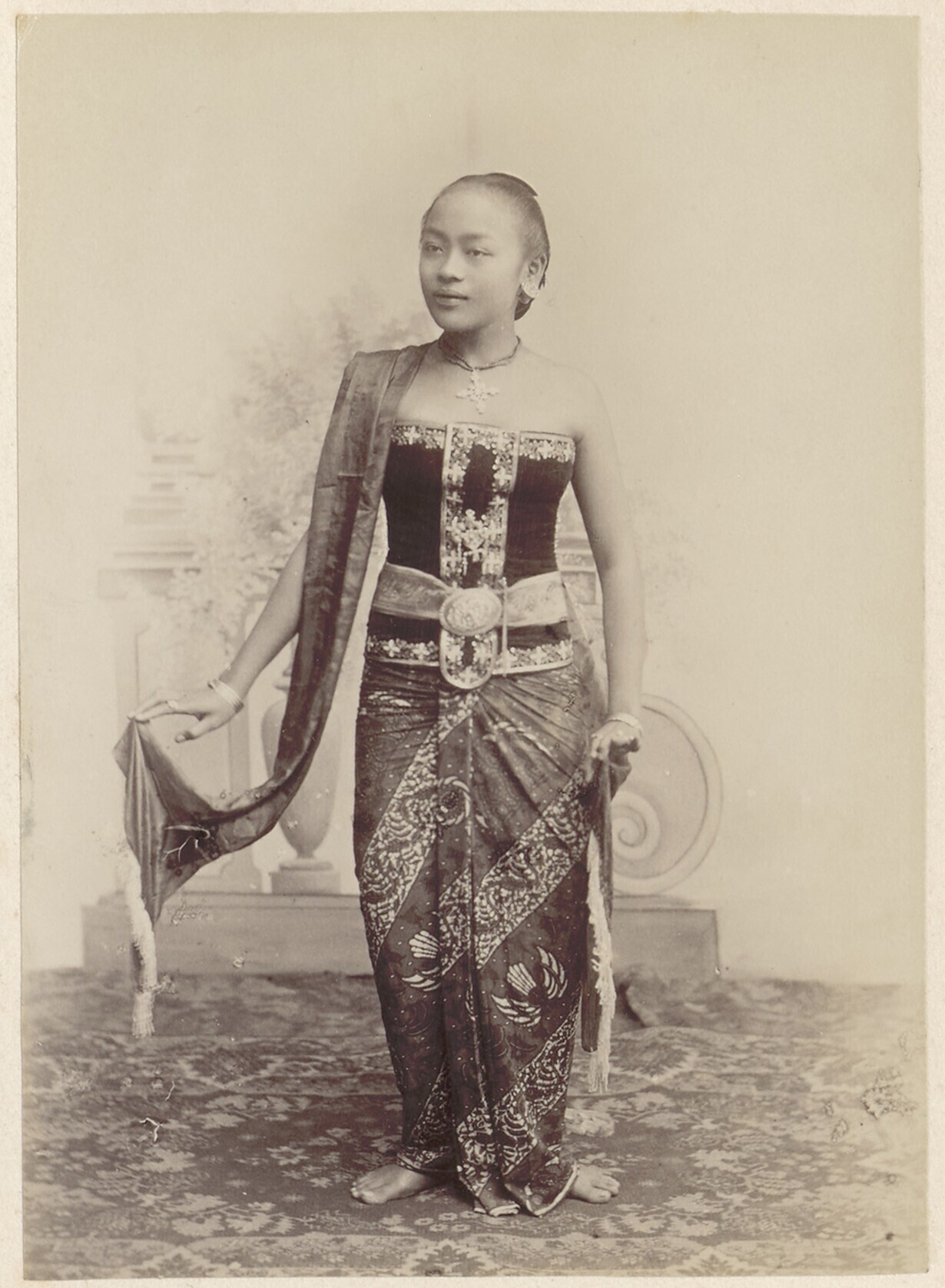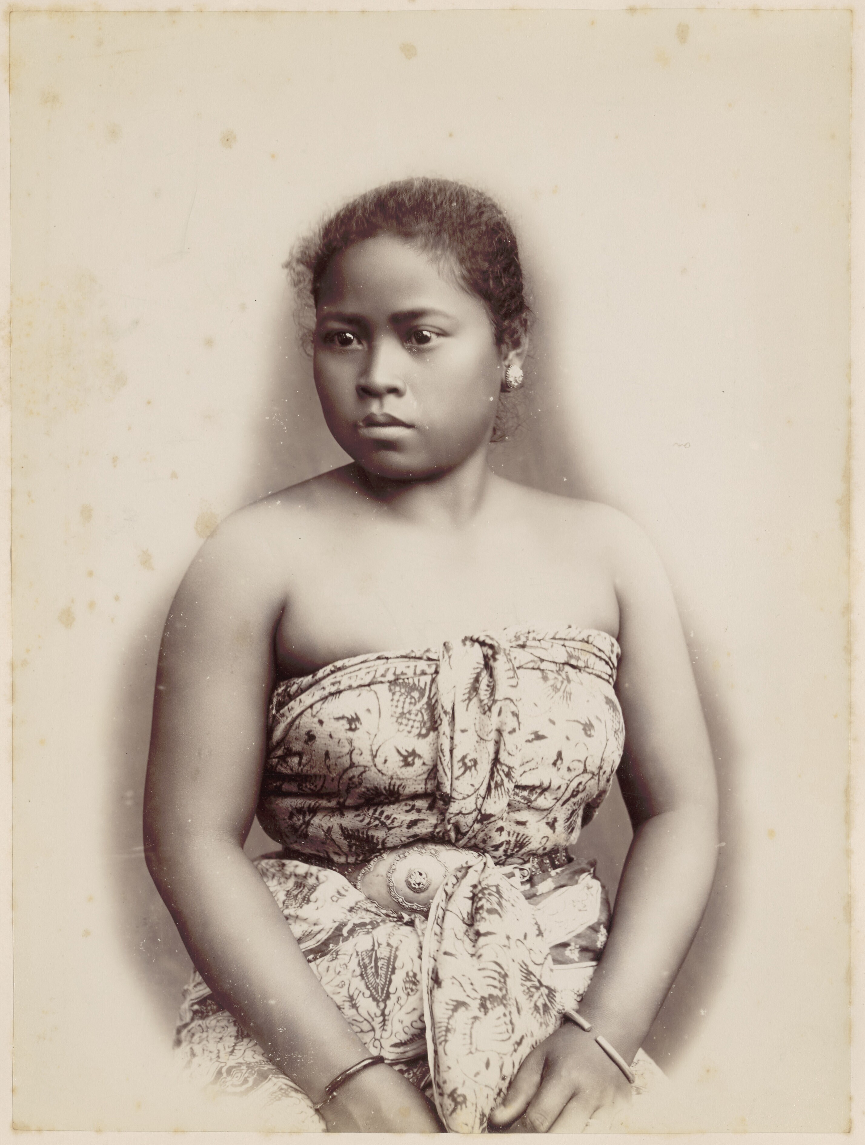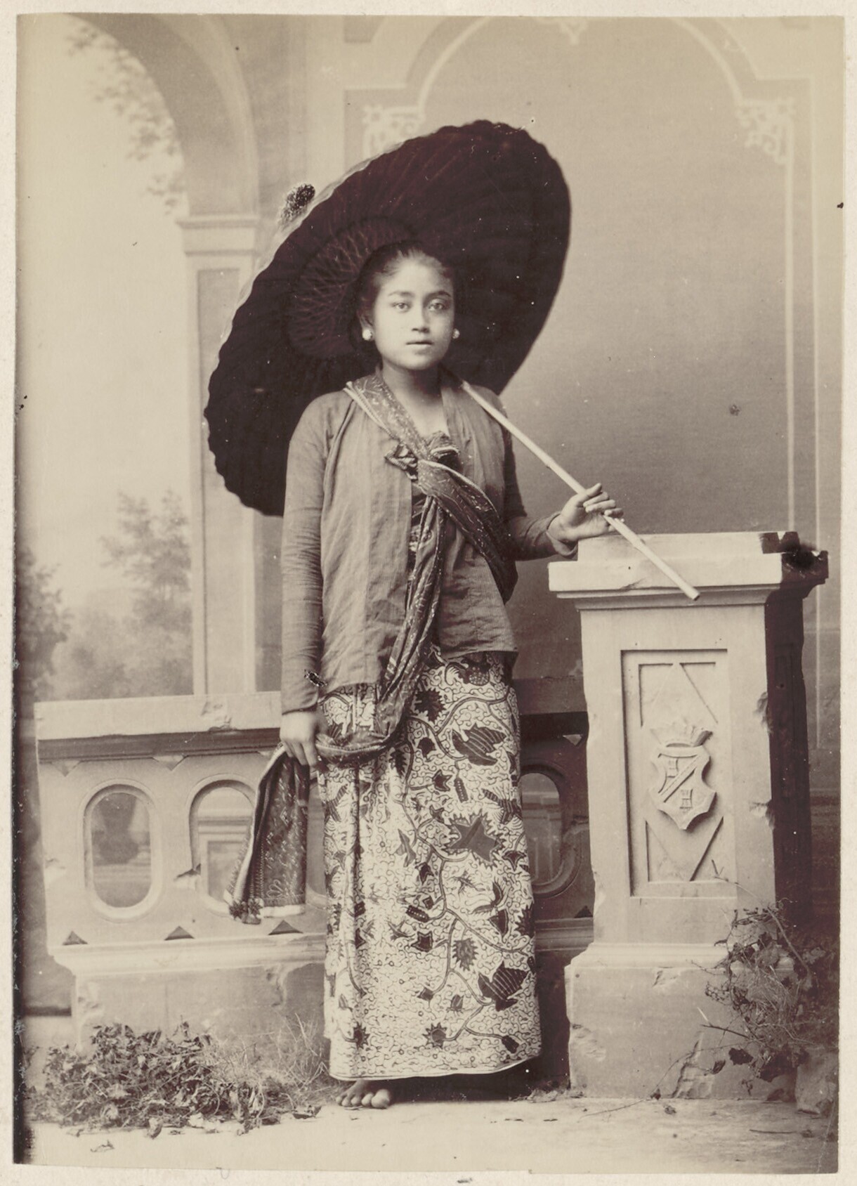 Studioportret van een Javaanse keukenmeid die bij ee...
