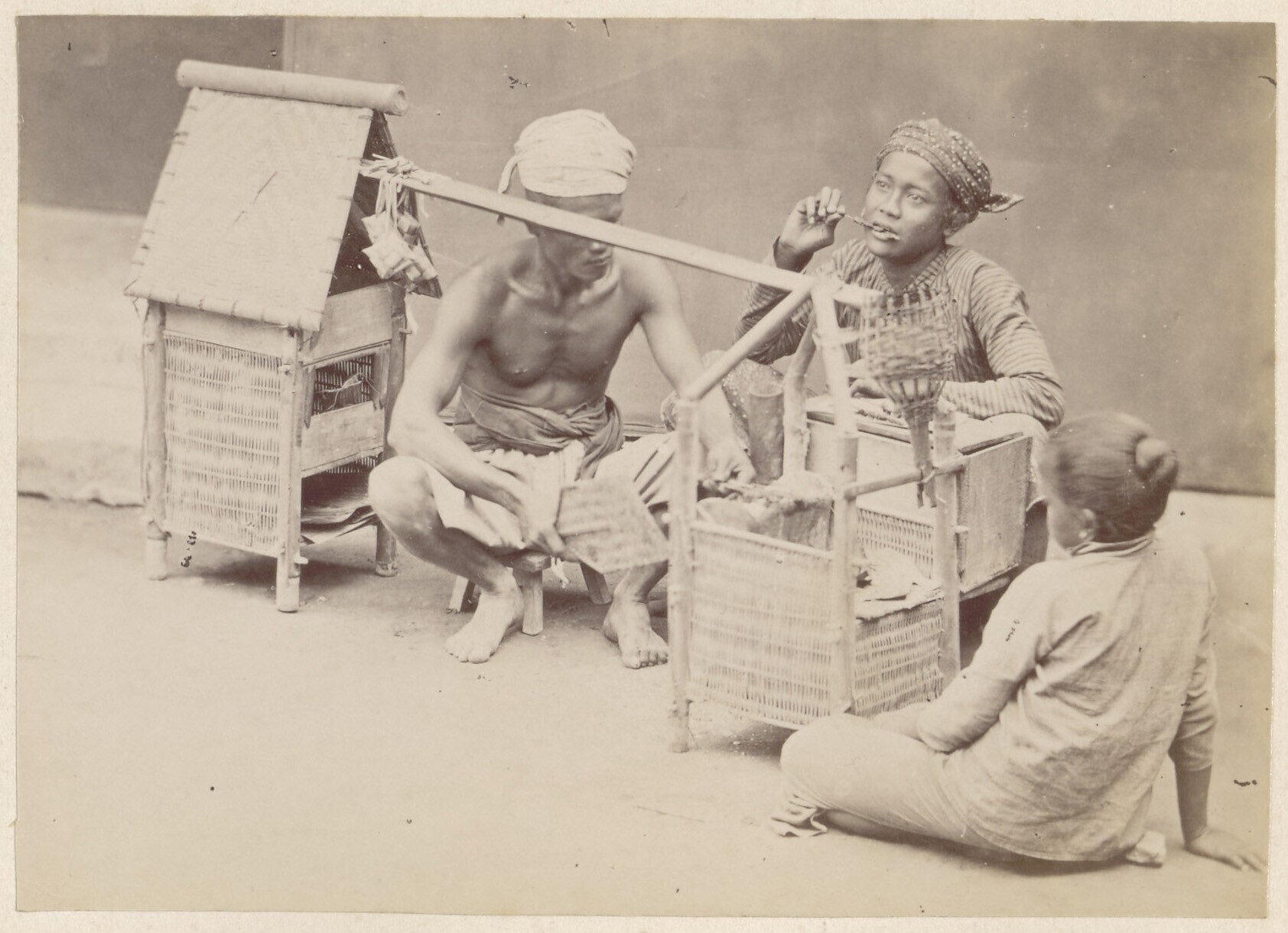 Studioportret van een Javaanse keukenmeid op weg naa...