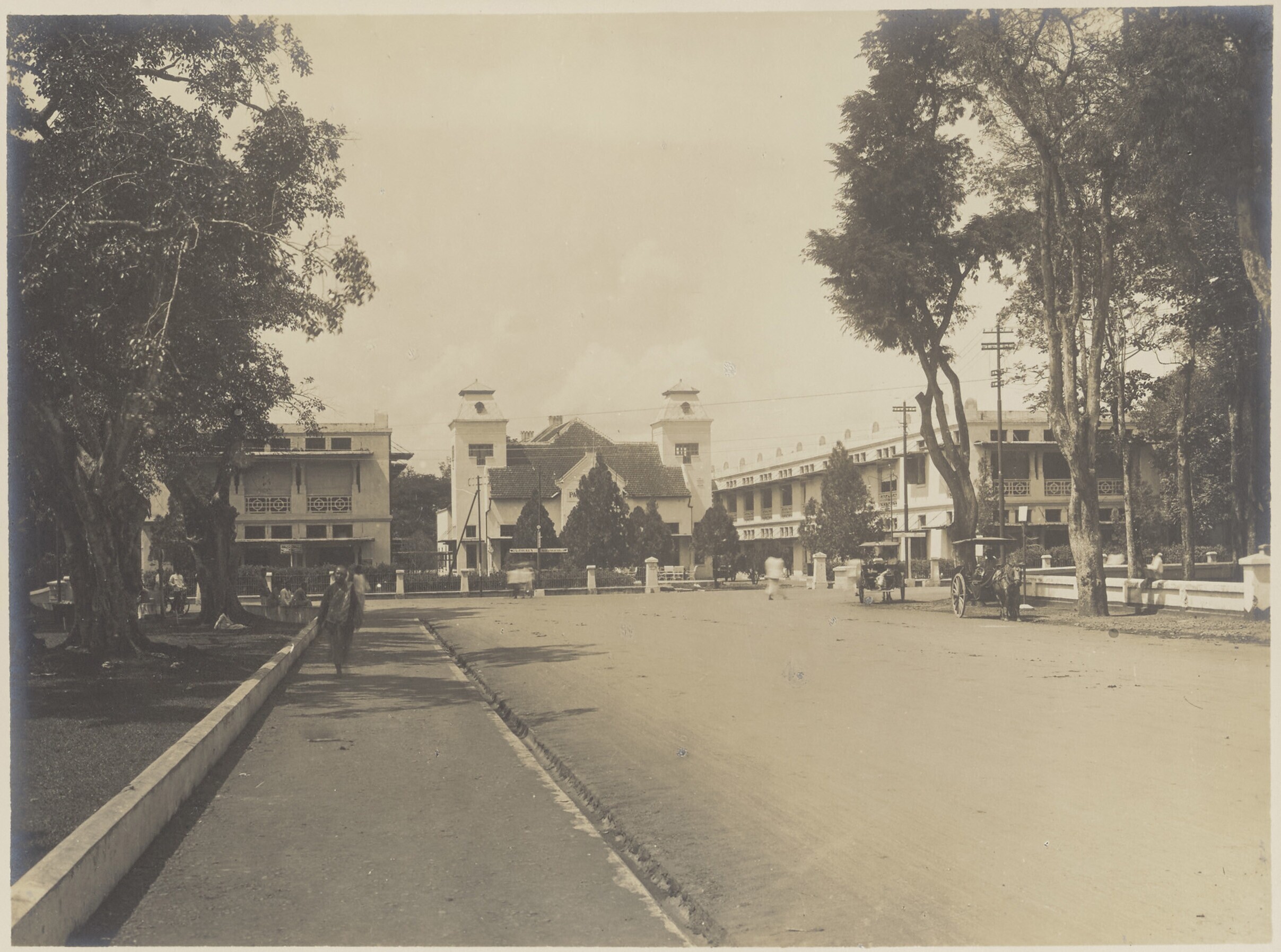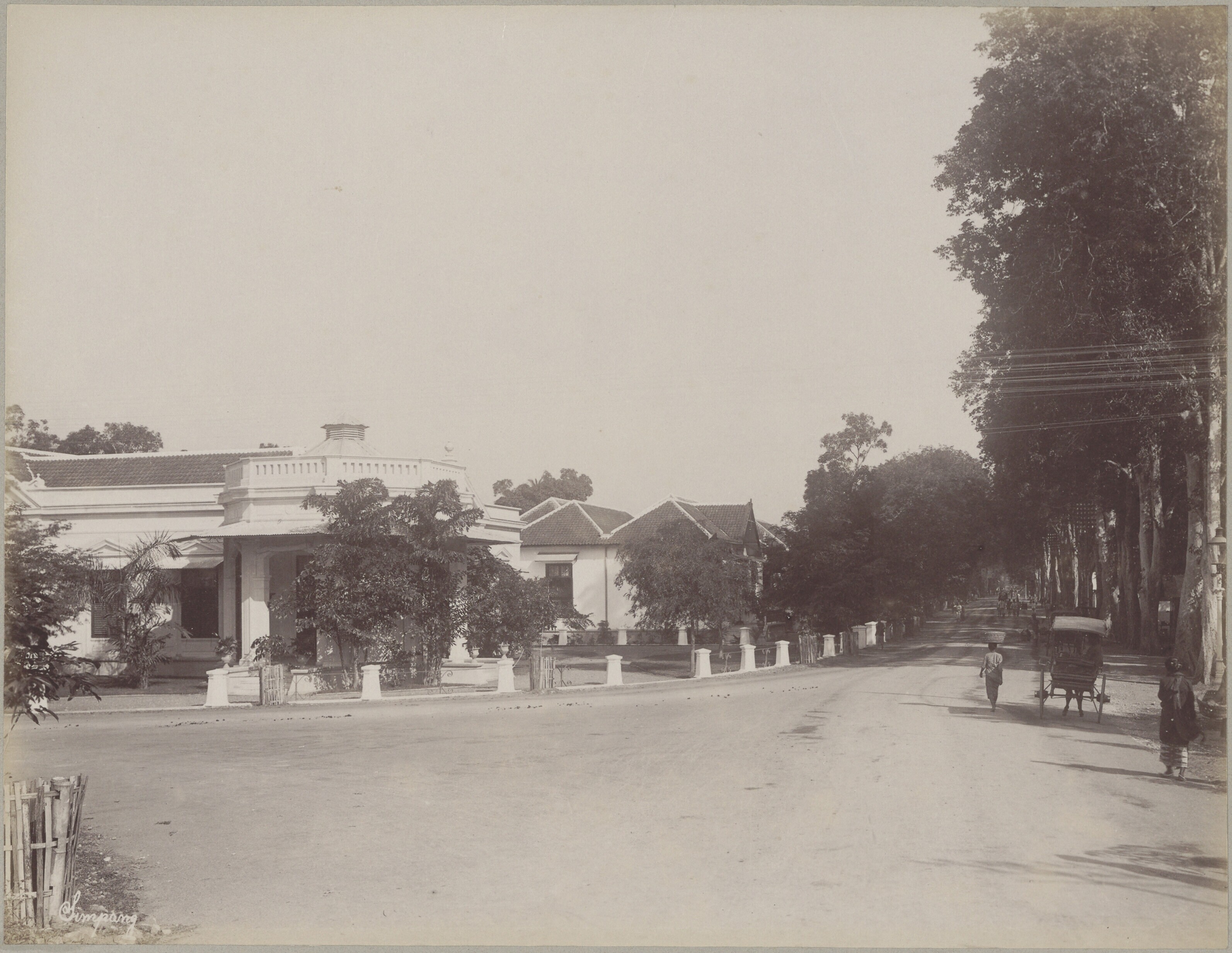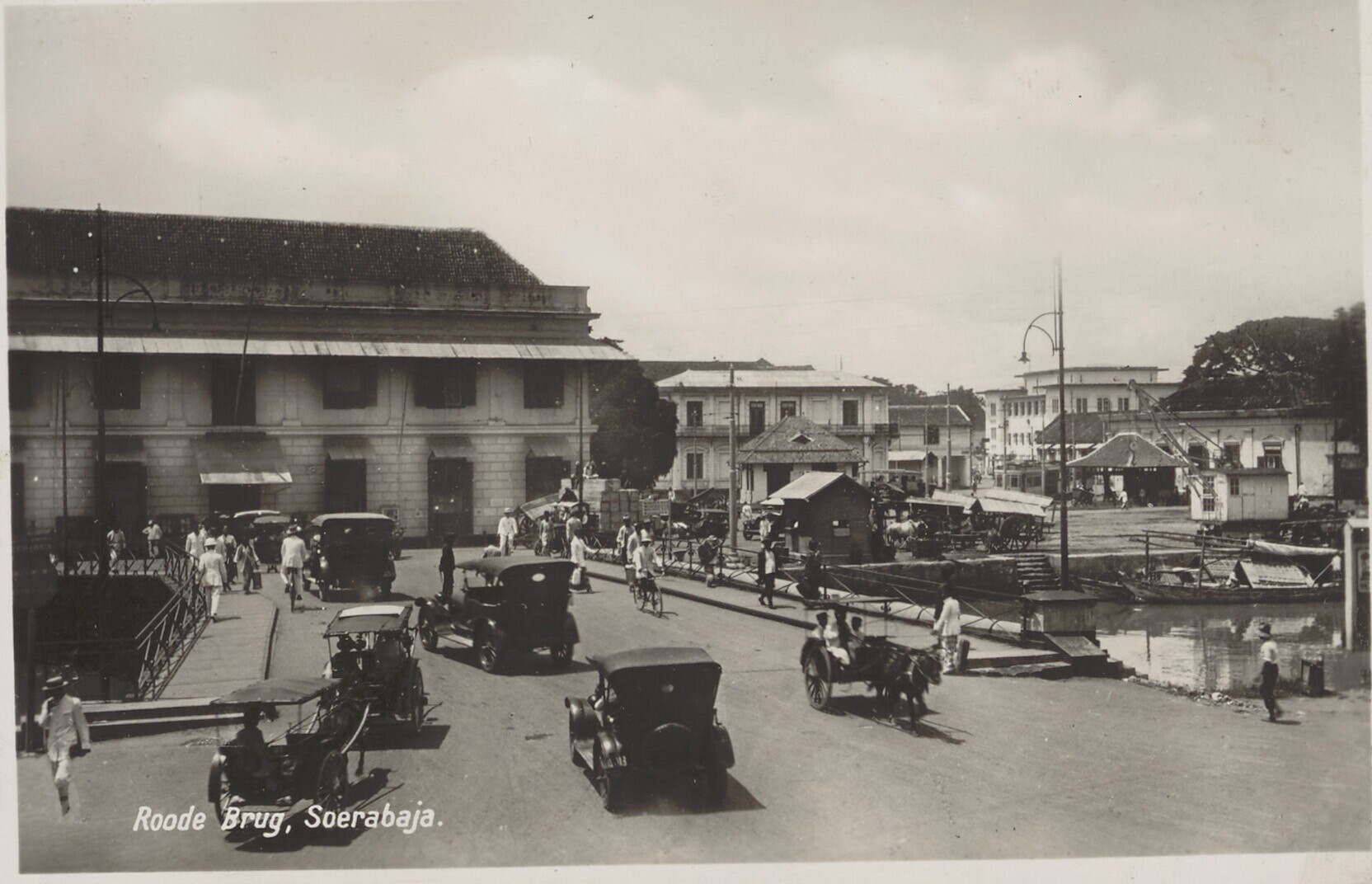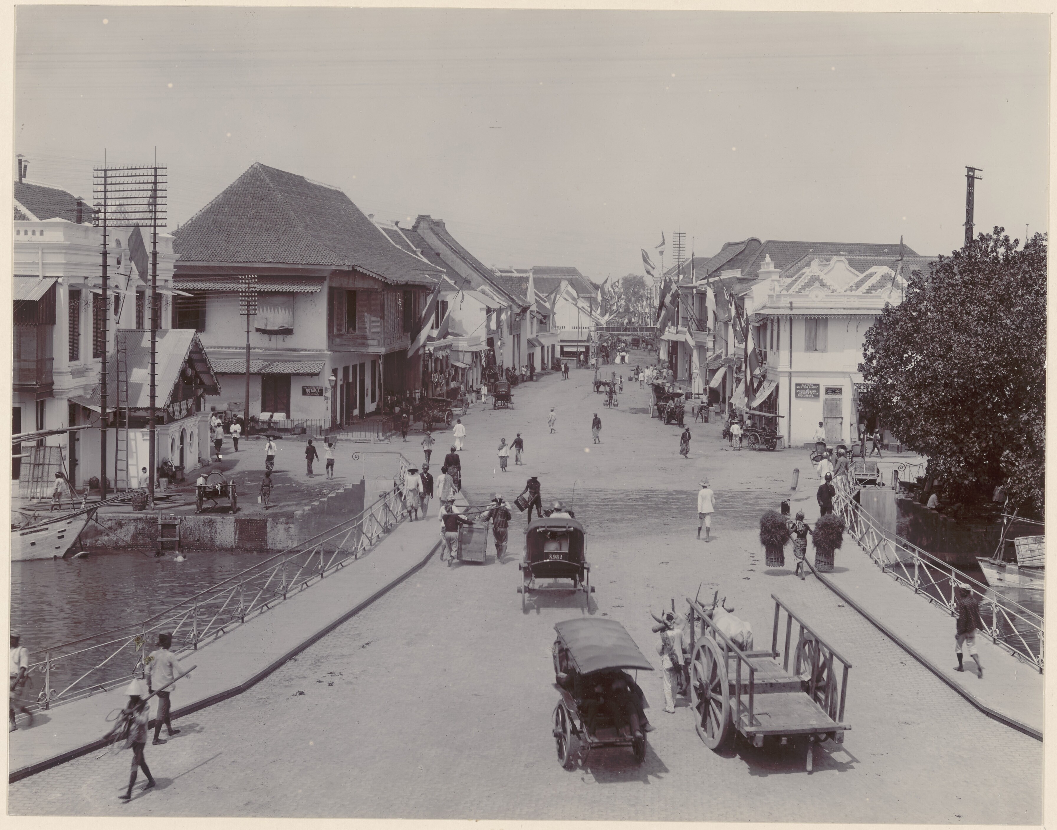 Verkeer op de Roode Brug voor het Gouvernementsgebou...