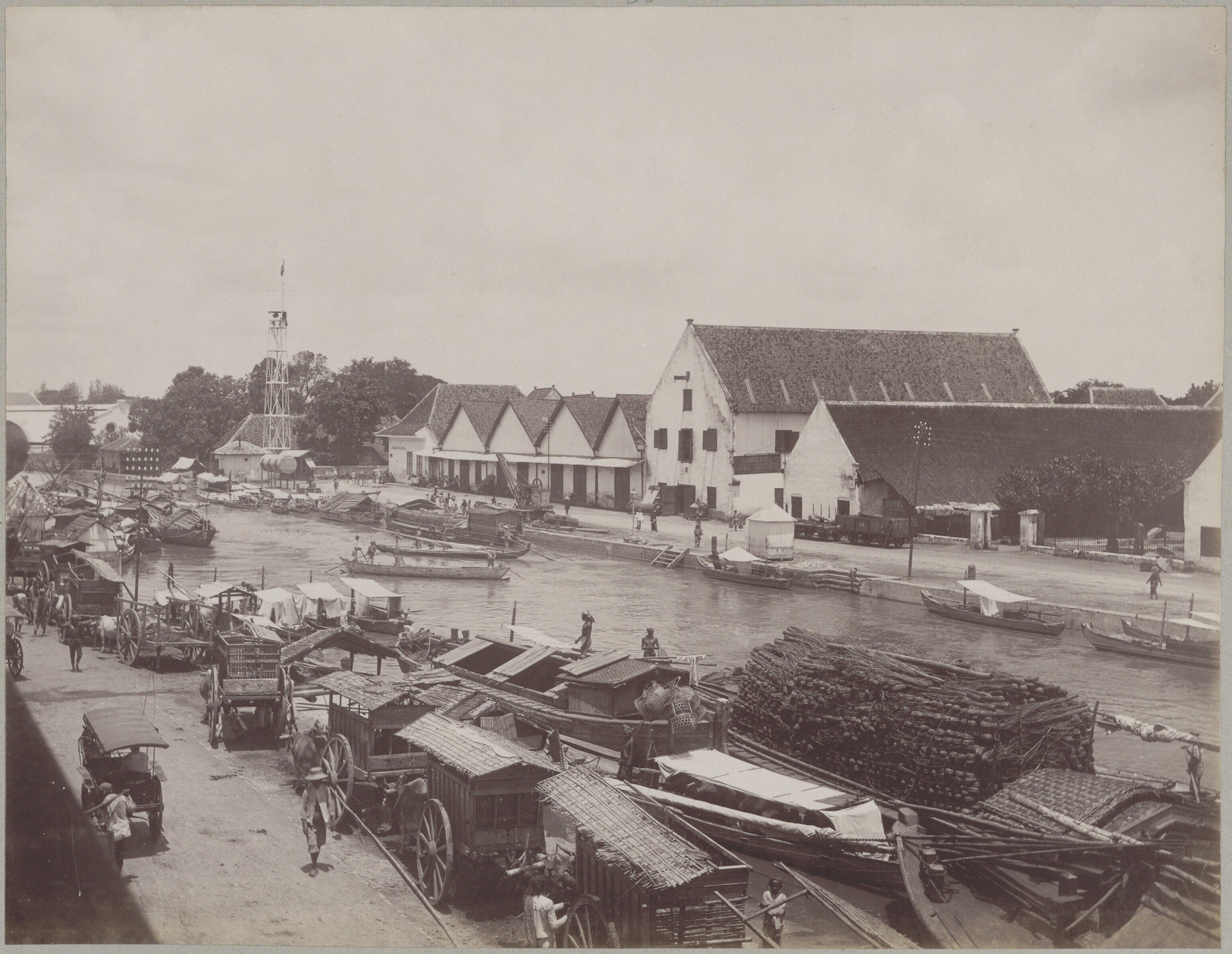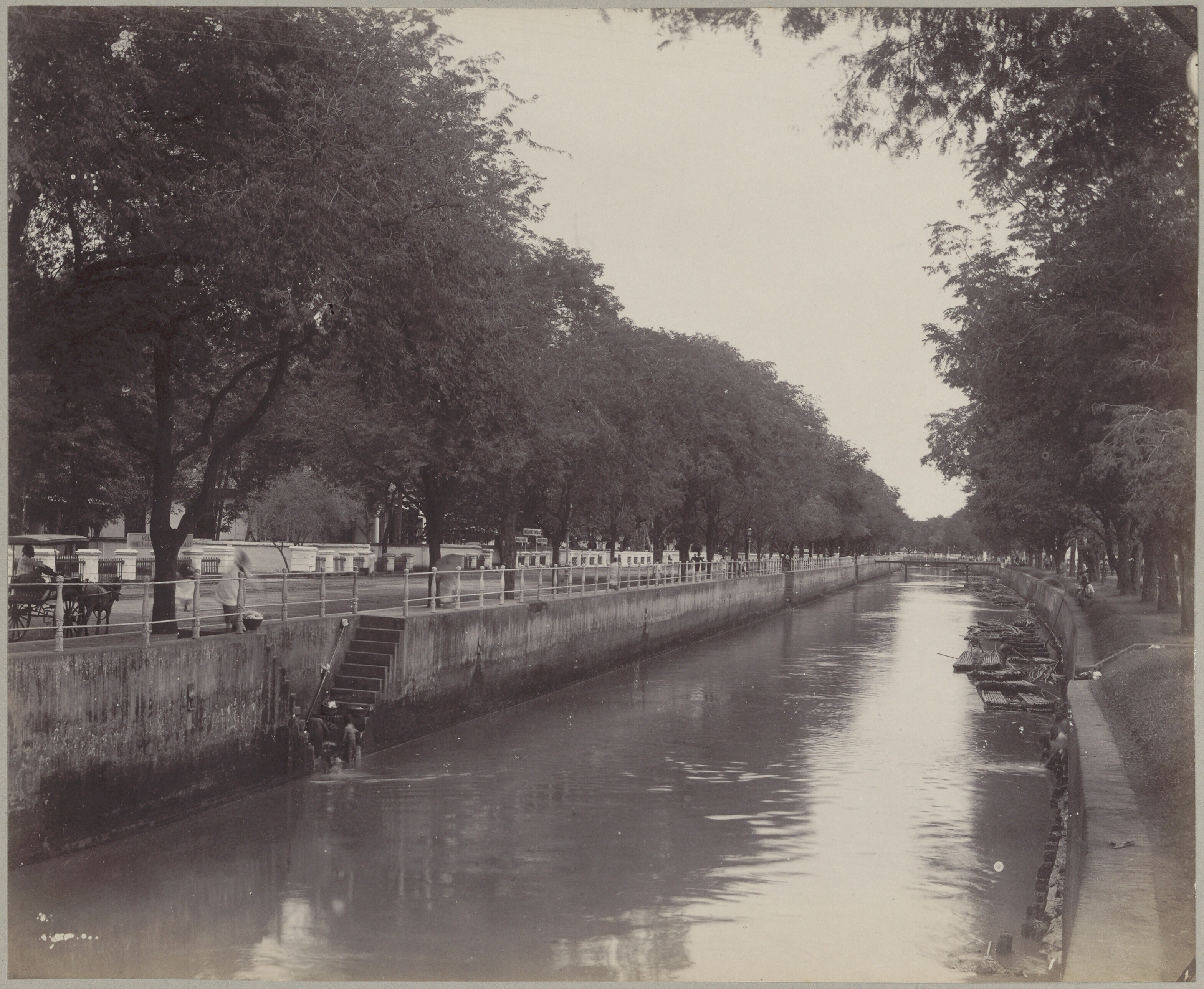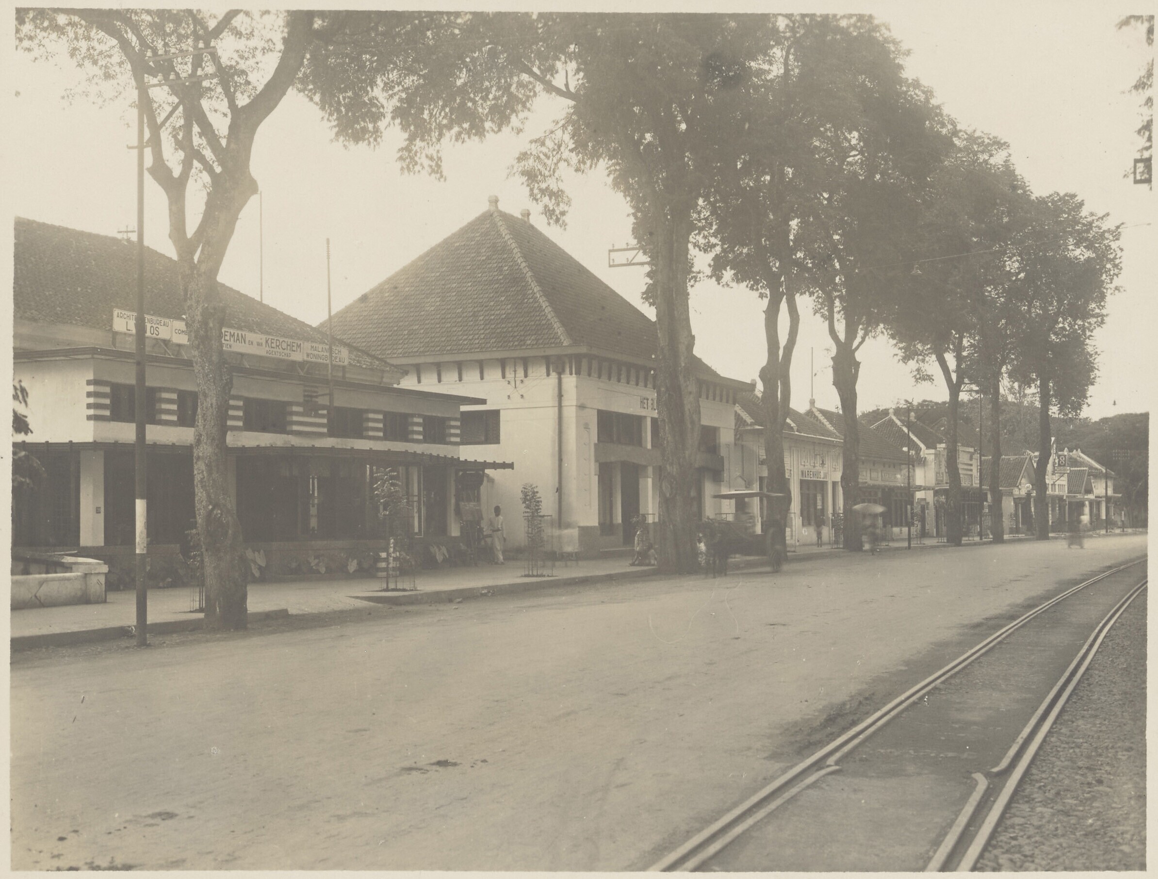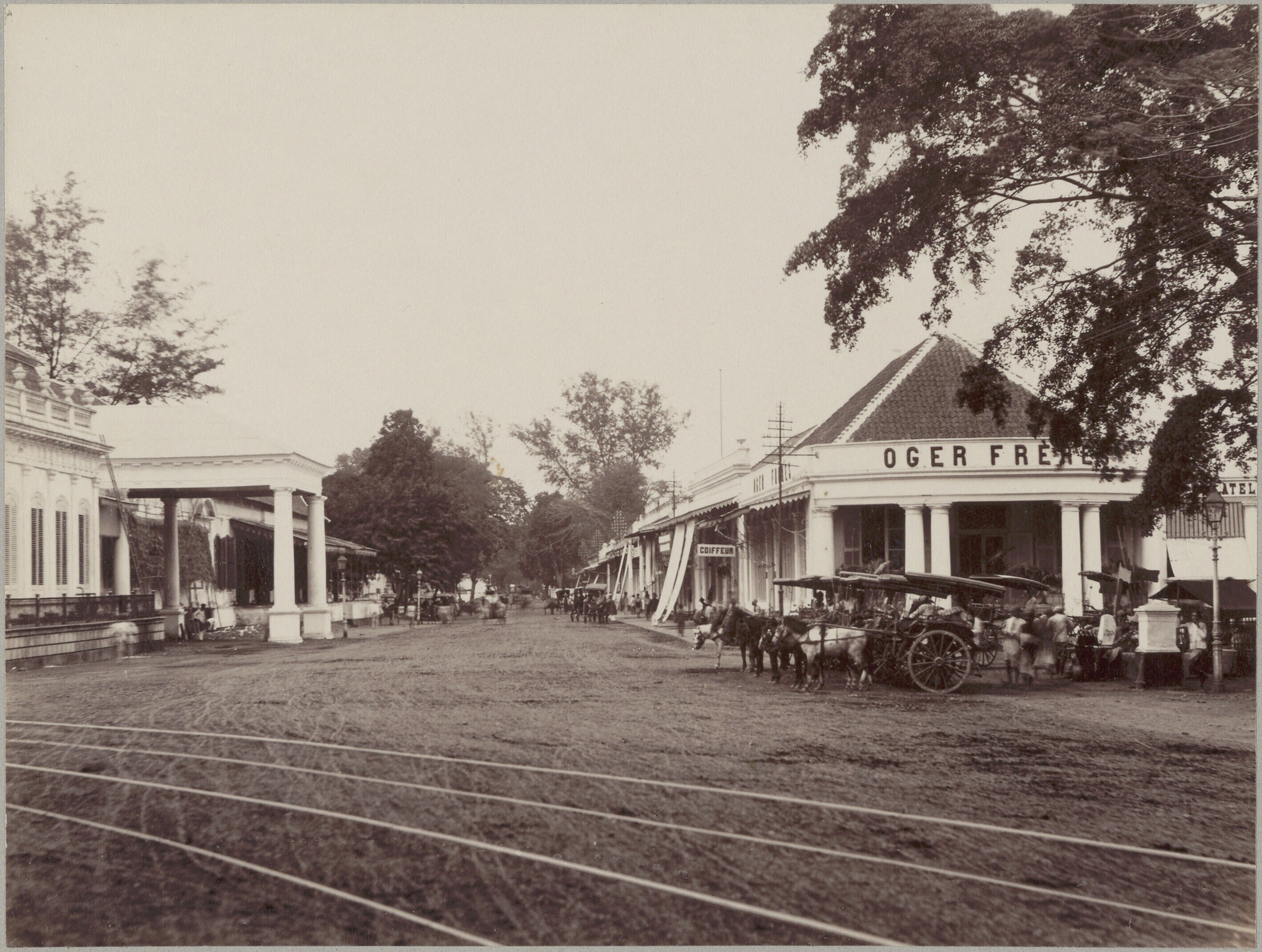 Verkeer op de Roode Brug voor het Gouvernementsgebou...