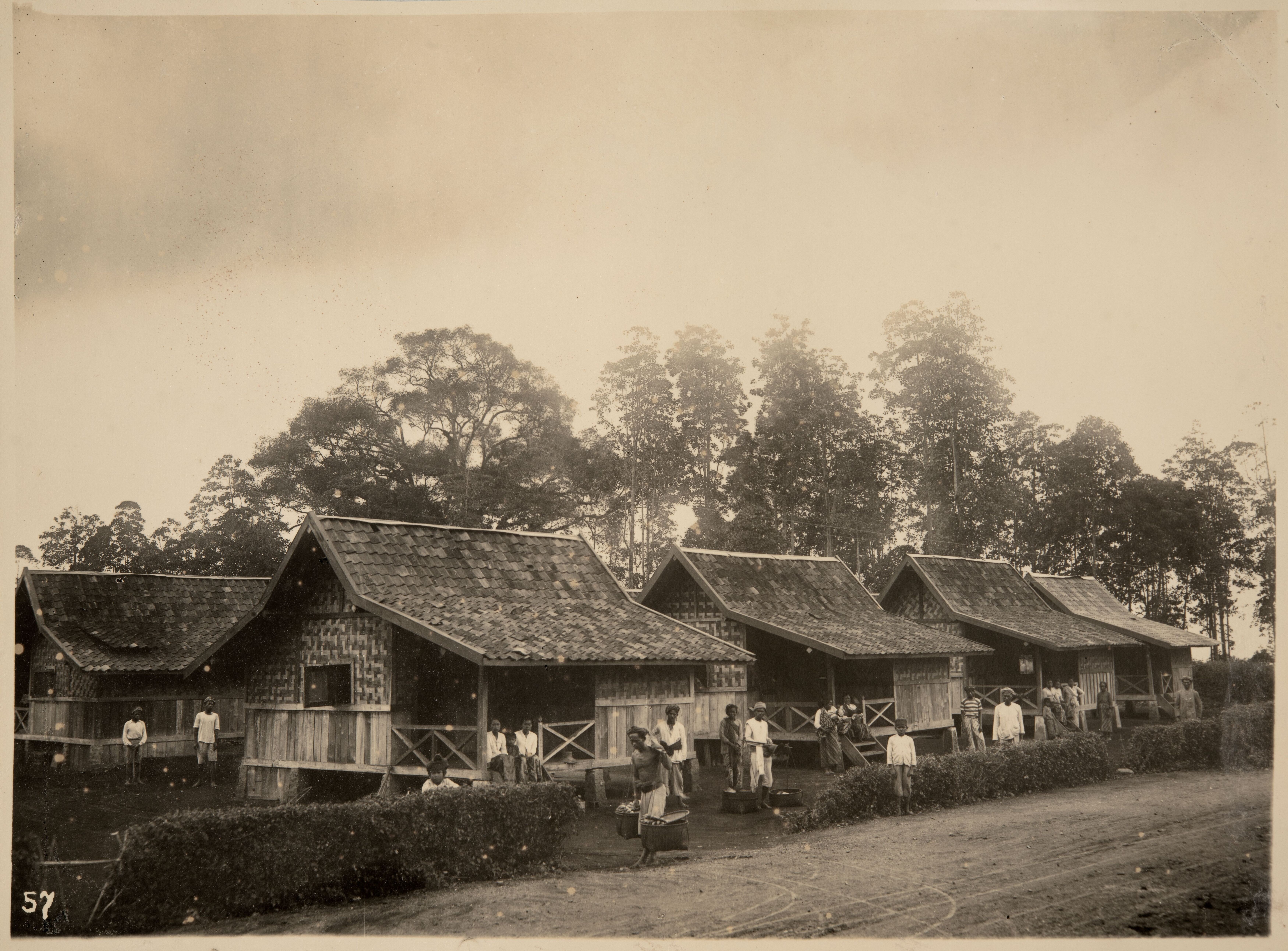Kampong waarin arbeiders van plantage Tjinjiroean zi...