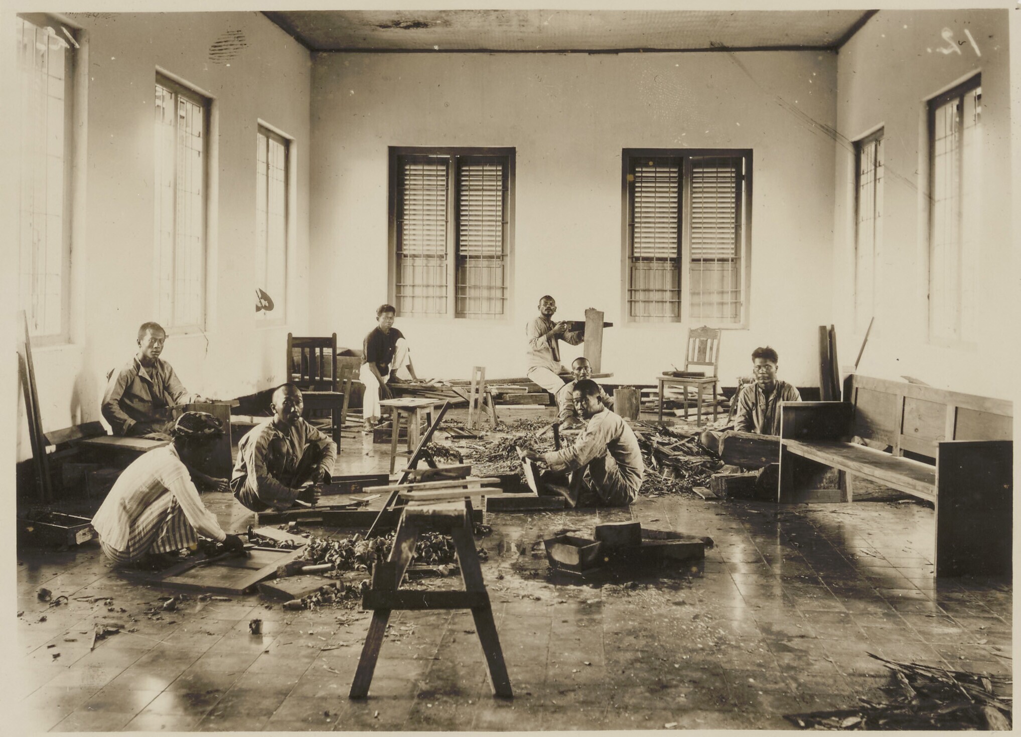 Patiënten vervaardigen houten meubels tijdens bezigh...