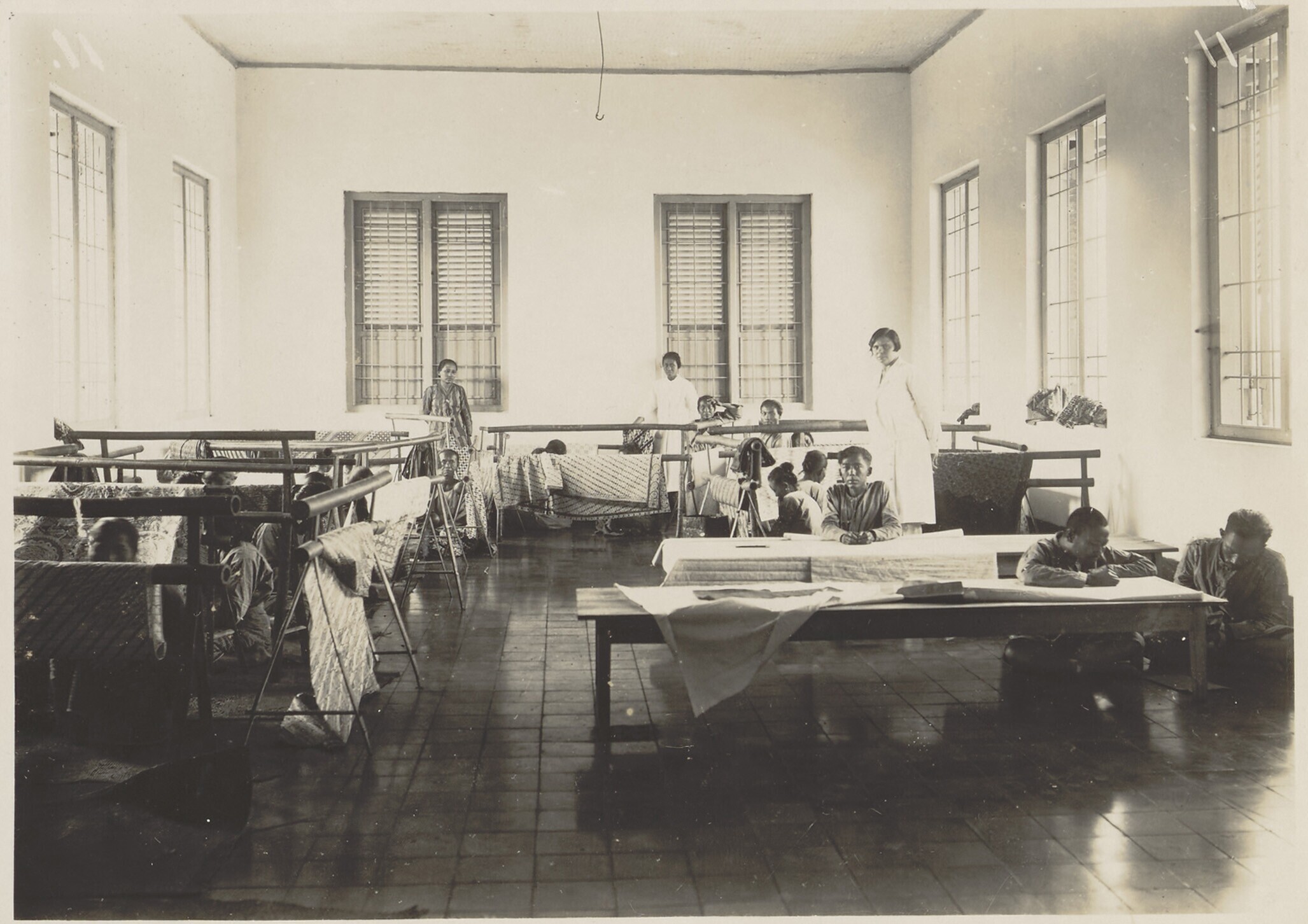 Batikkende patiënten tijdens bezigheidstherapie in h...