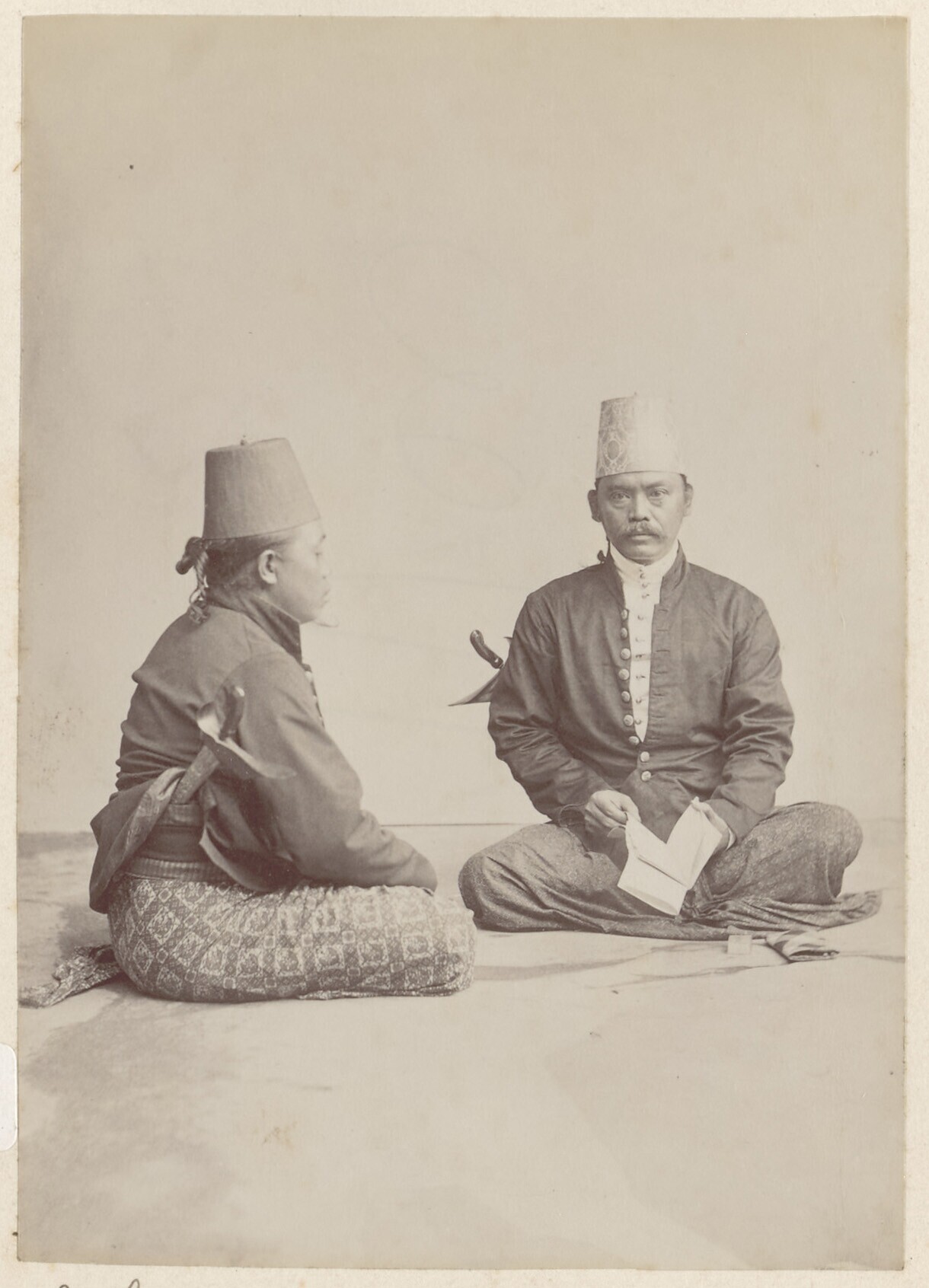 Studioportret van een Javaanse ambtenaar met een ond...