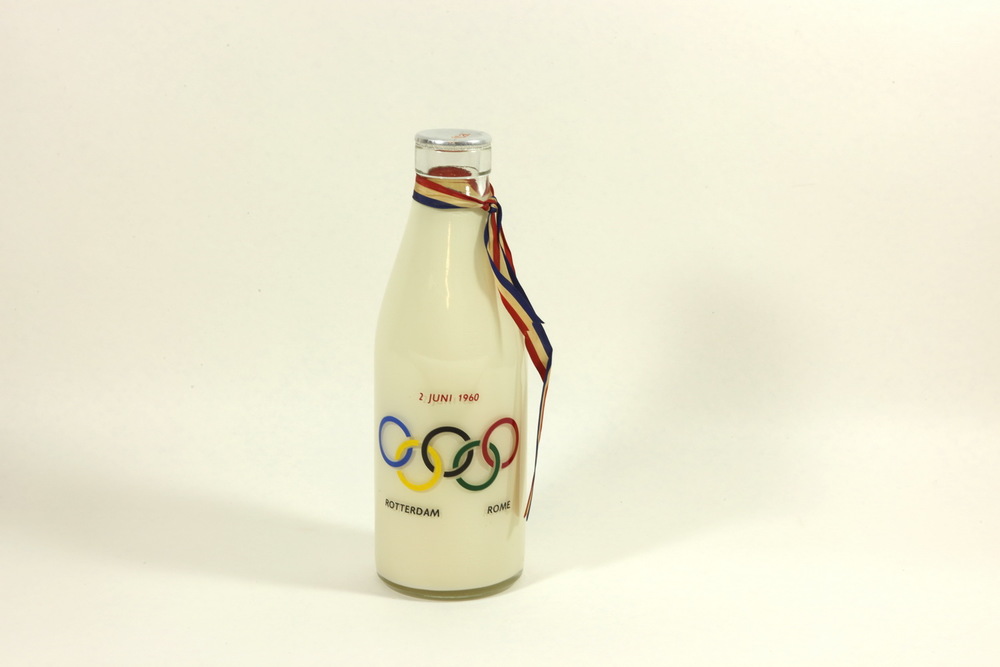 Melkfles "Rotterdam Rome 2 juni 1960" van de Melkfab...