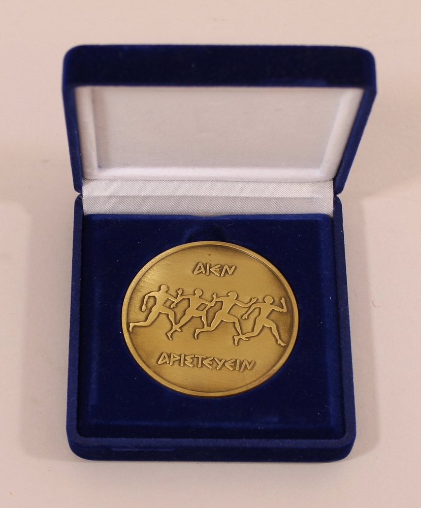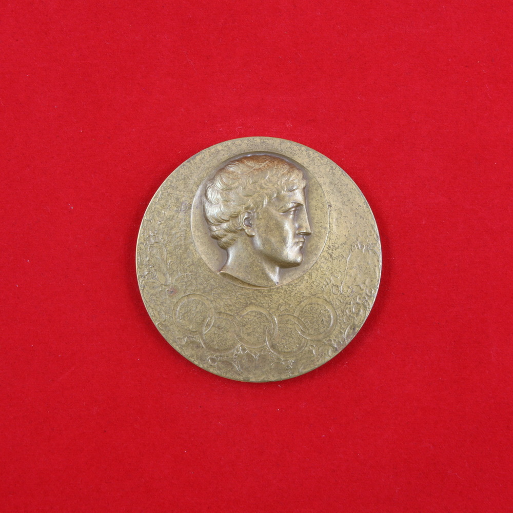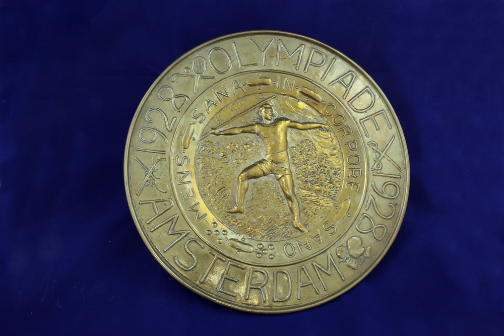 Koperen wandbord 'speerwerper' van de Olympische Zom...