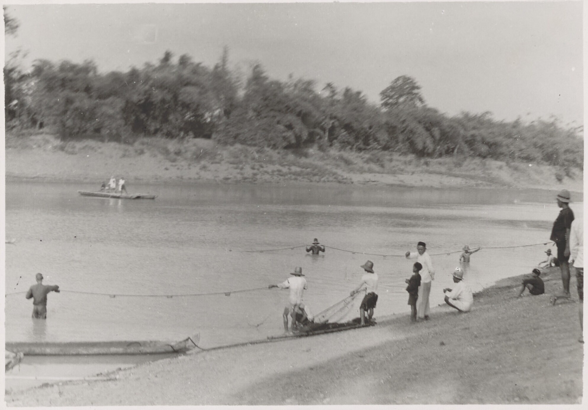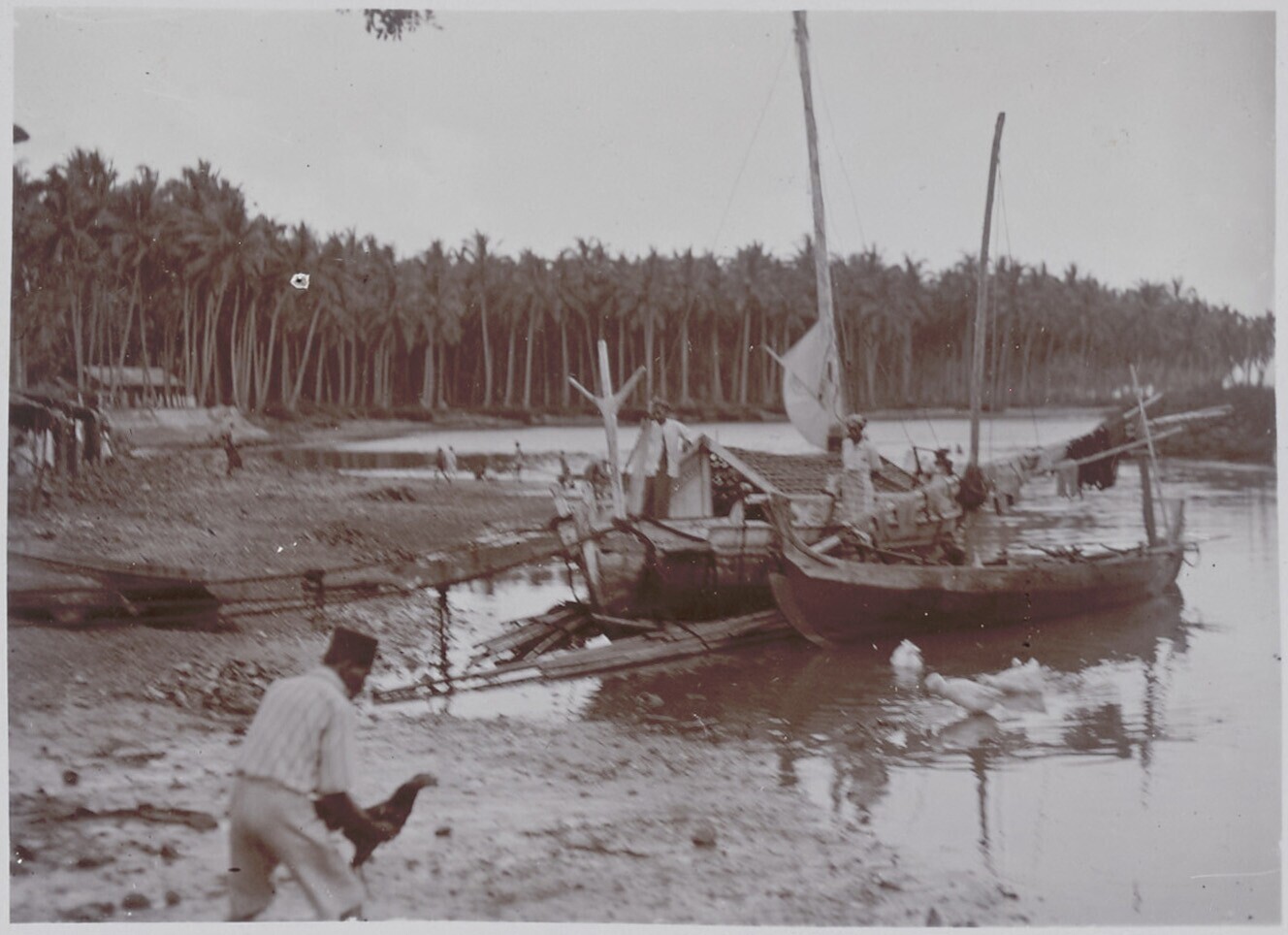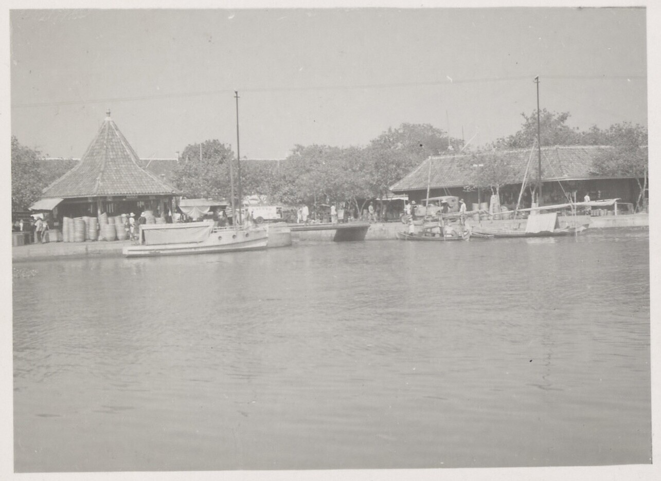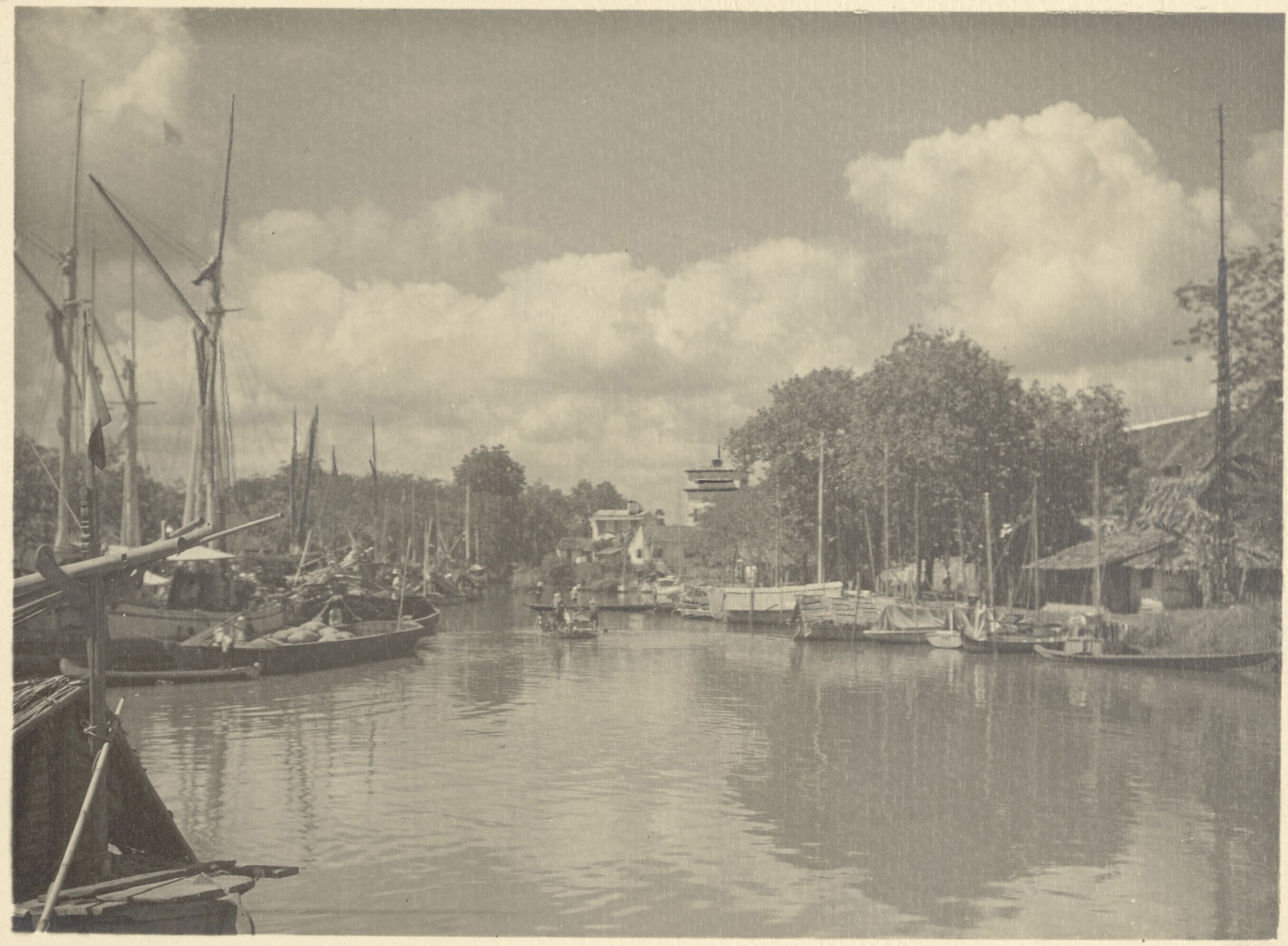 Een kali in Batavia met bamboevlotten afkomstig uit ...