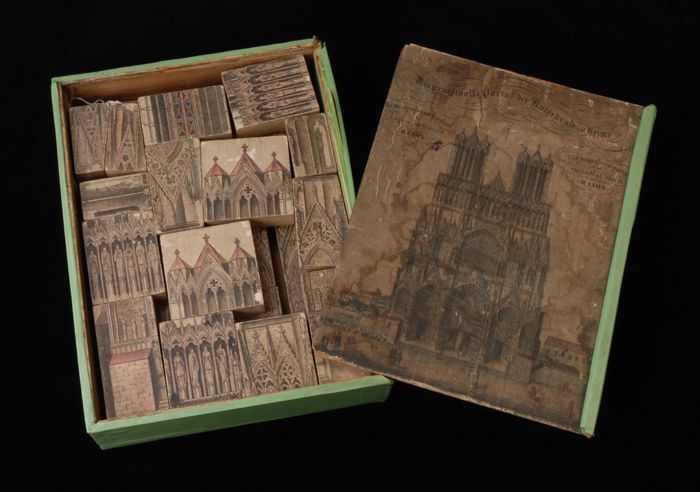 Blokkendoos (A) met schuifdeksel (B) met afbeelding ...