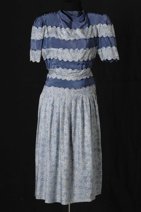 Blauwe zijden zomerjurk met bloemenpatroon