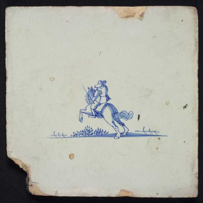 Figuurtegel, blauw, ruiter op steigerend paard, geen...