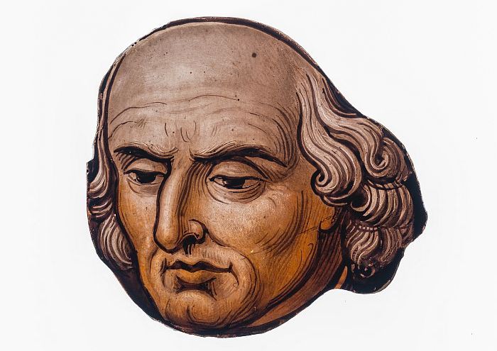 R.K. Kerk Stieltjesplein: glas-in-loodfragment van é...