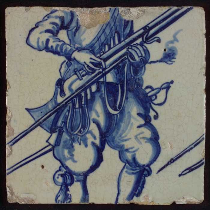 Tegel van tableau met in blauw tors van soldaat met ...