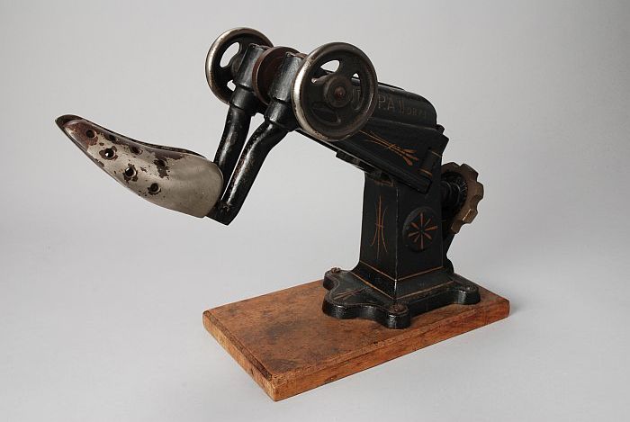 Teenheffer bij oprekmachine, gebruikt door schoenmak...