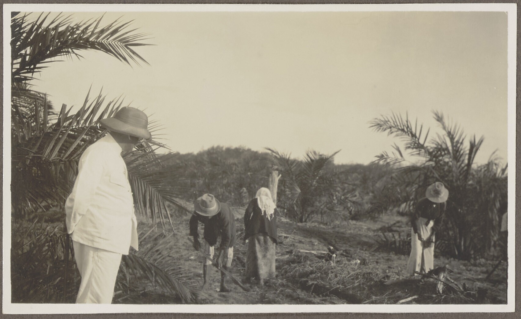 De heer Seebasz bekijkt het zaaien op oliepalmplanta...