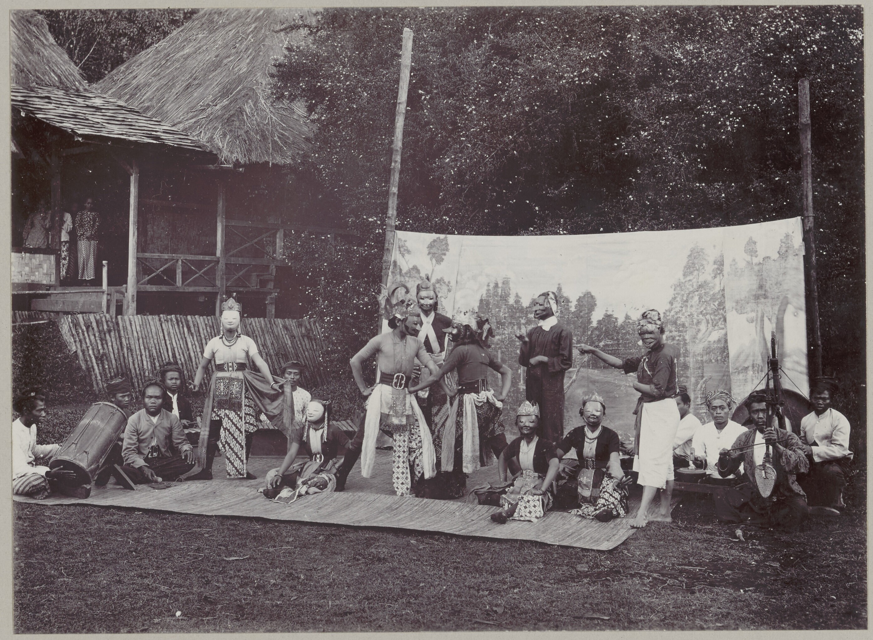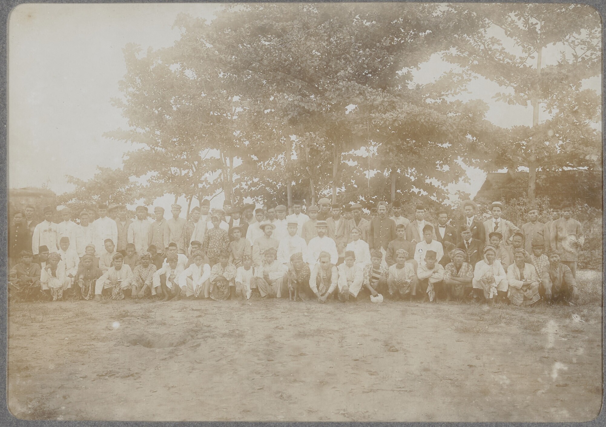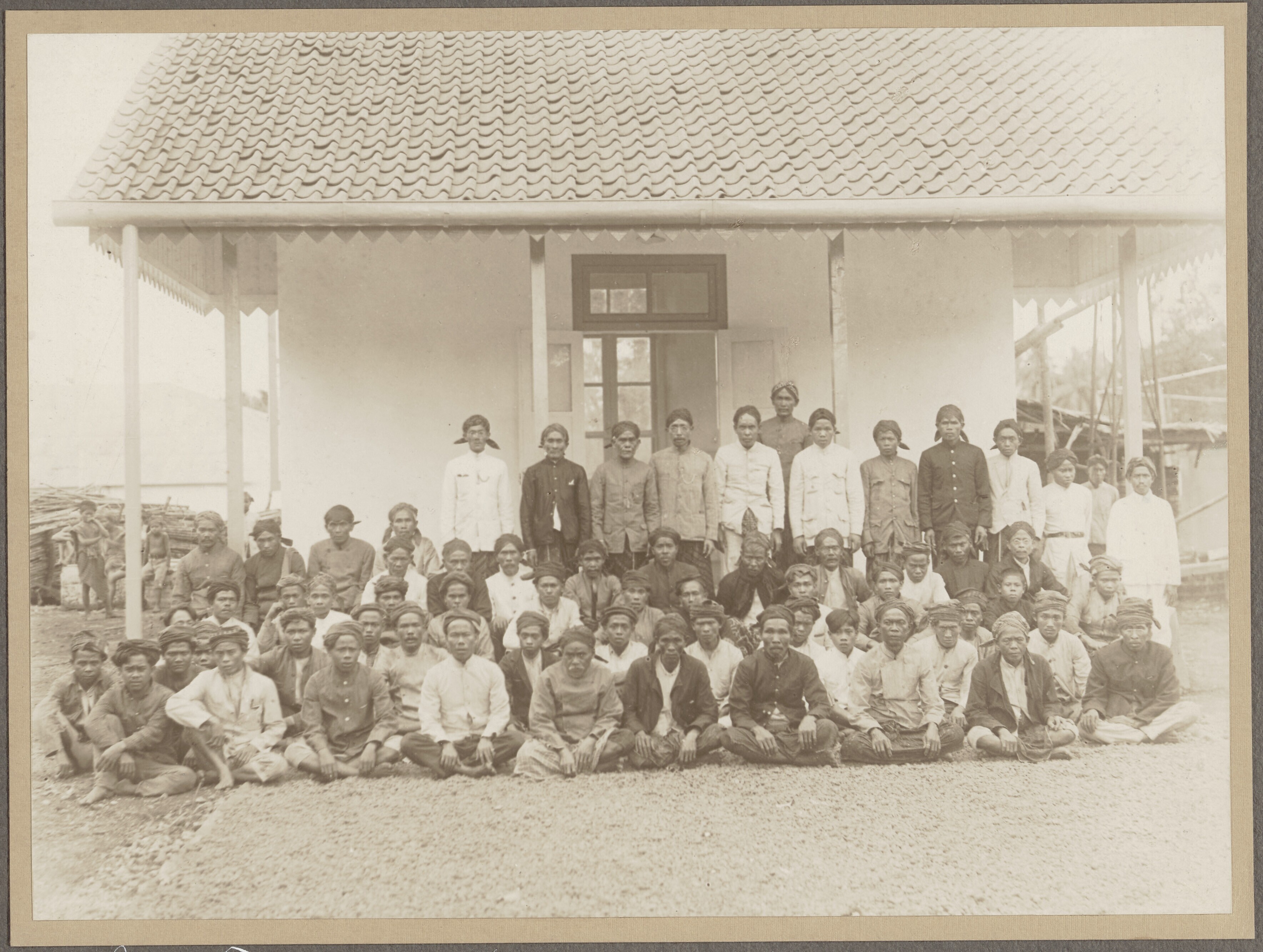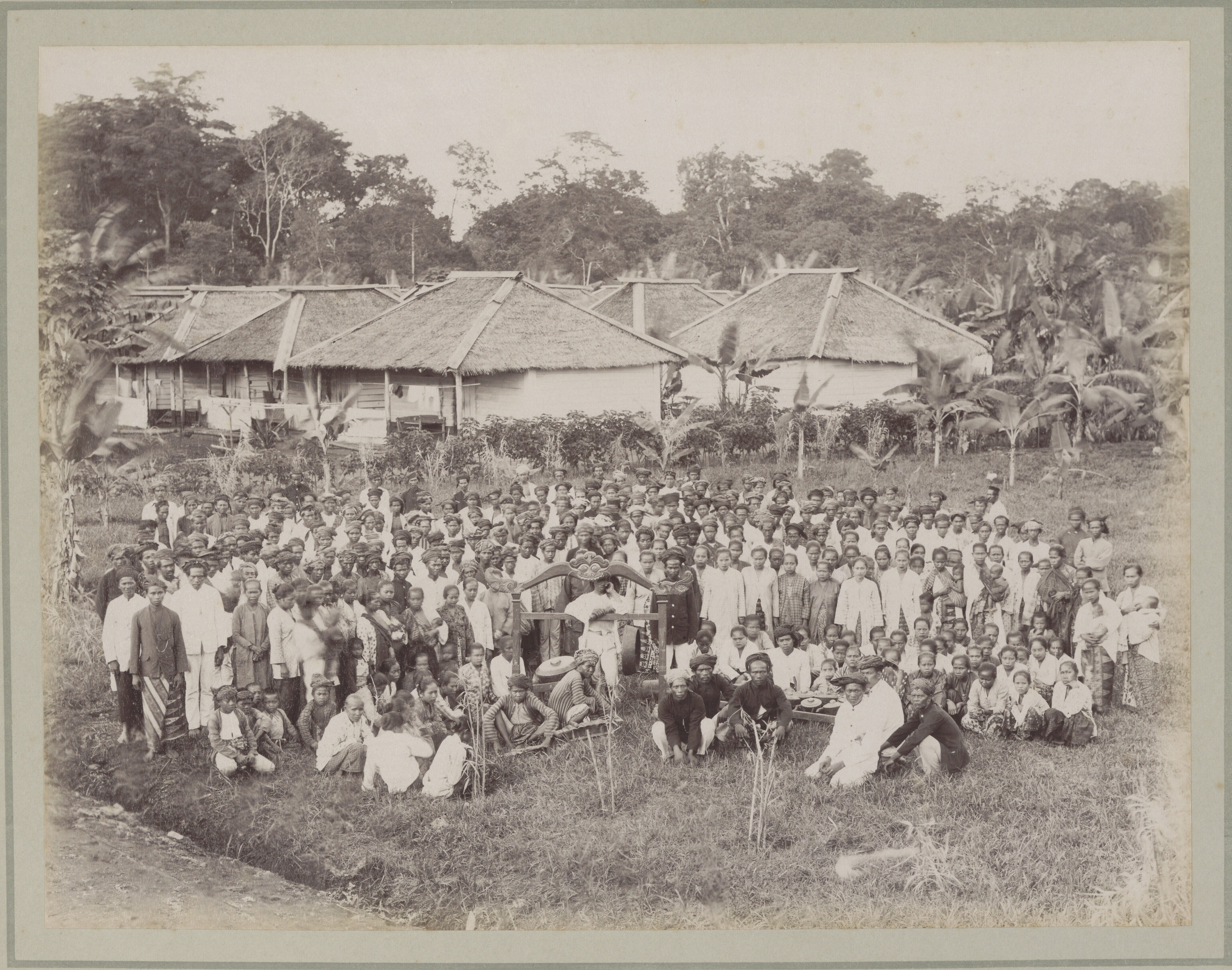 Een groepsfoto met Javaanse arbeiders en een gamelan...
