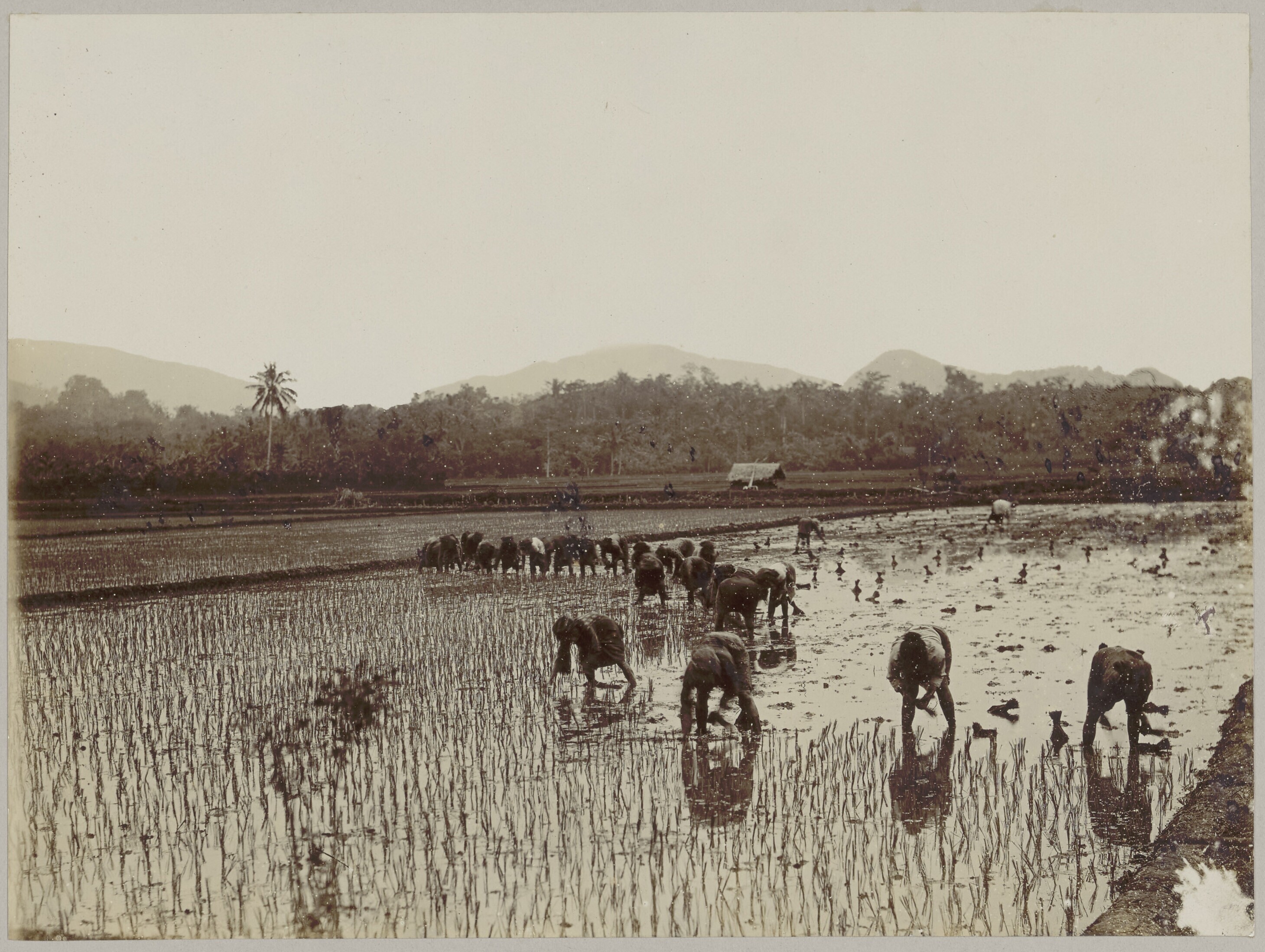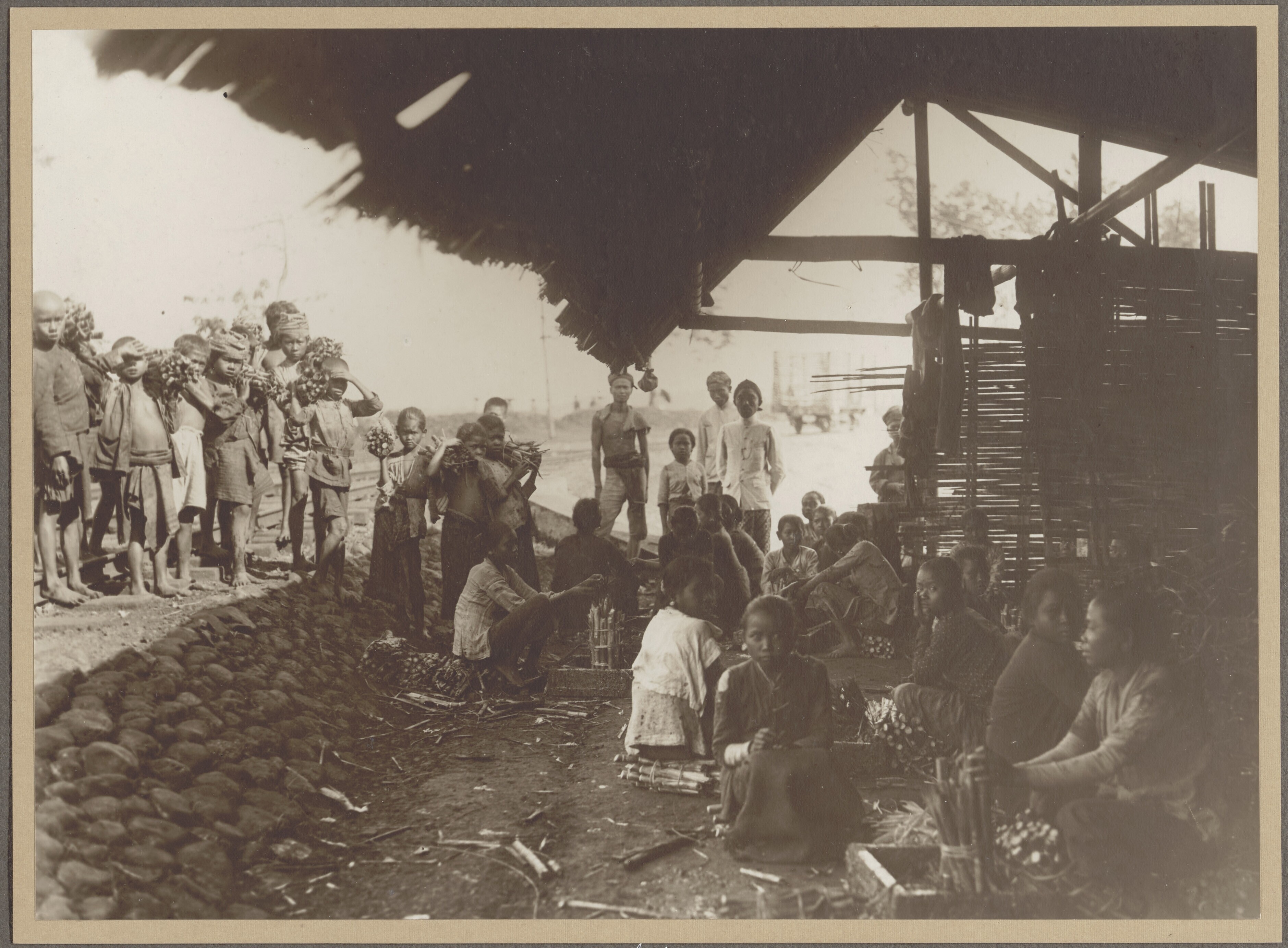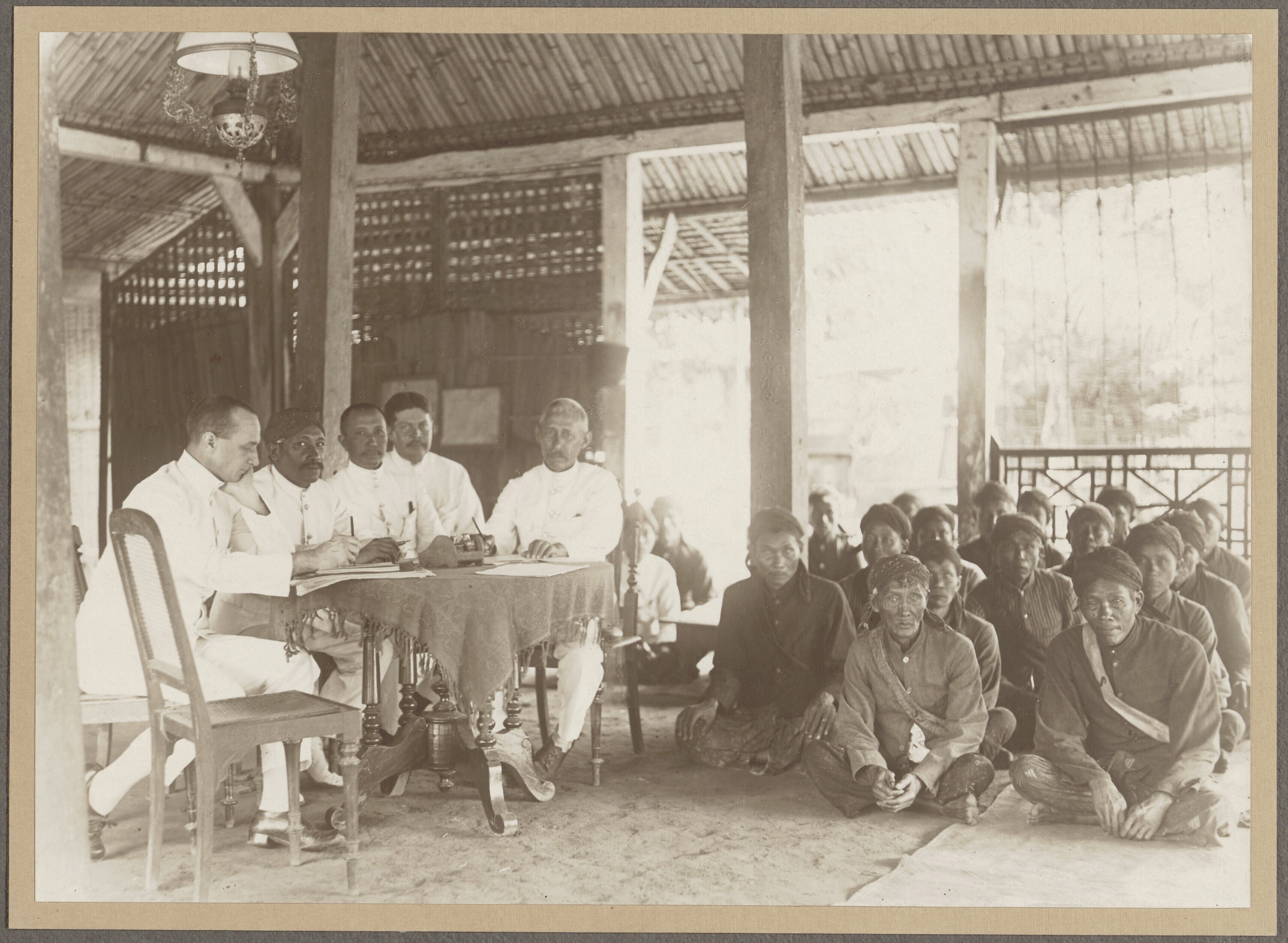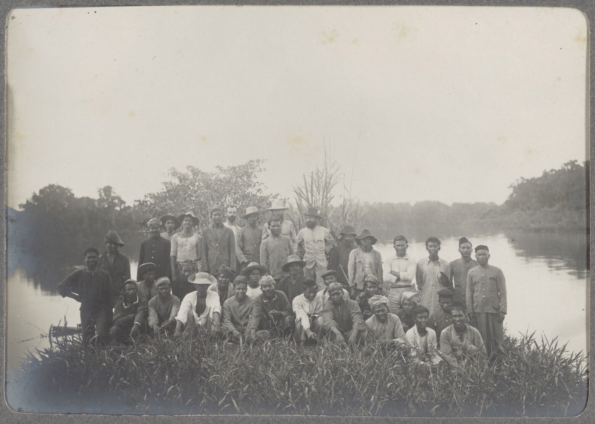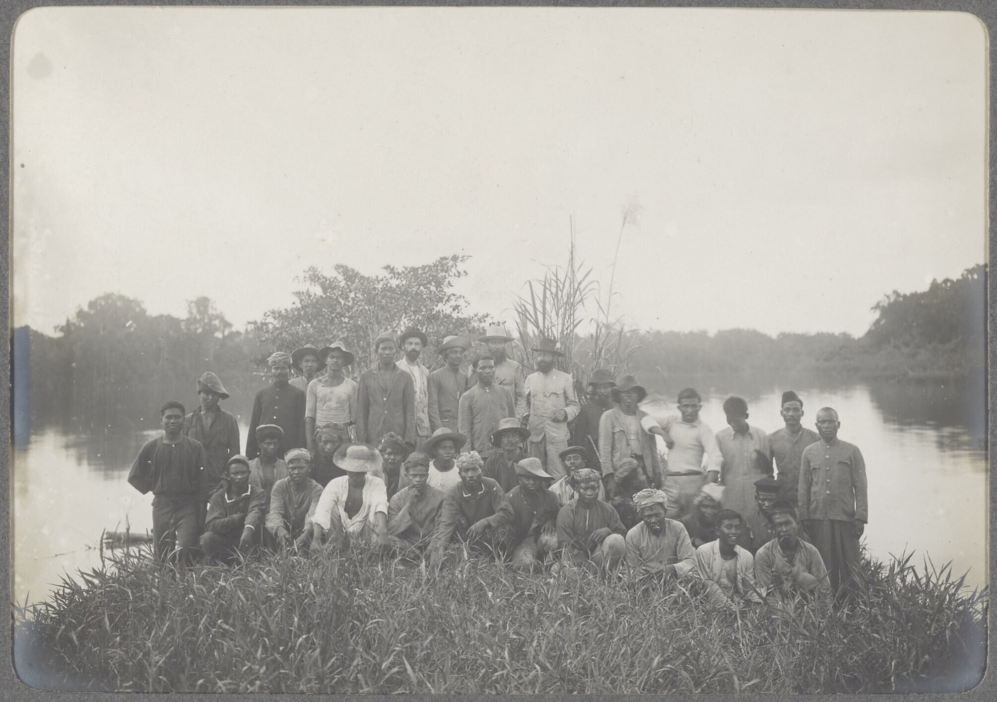 Een groepsfoto met Javaanse arbeiders en een gamelan...