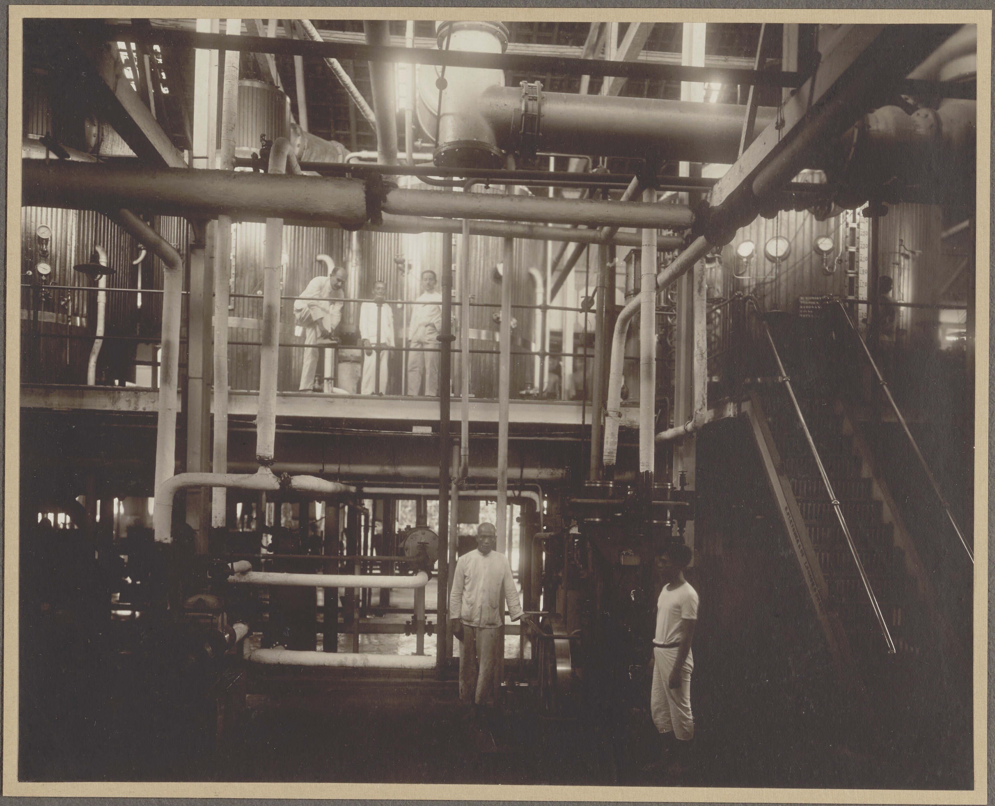 Groepsportret met suikerkokers, laboranten en Chines...