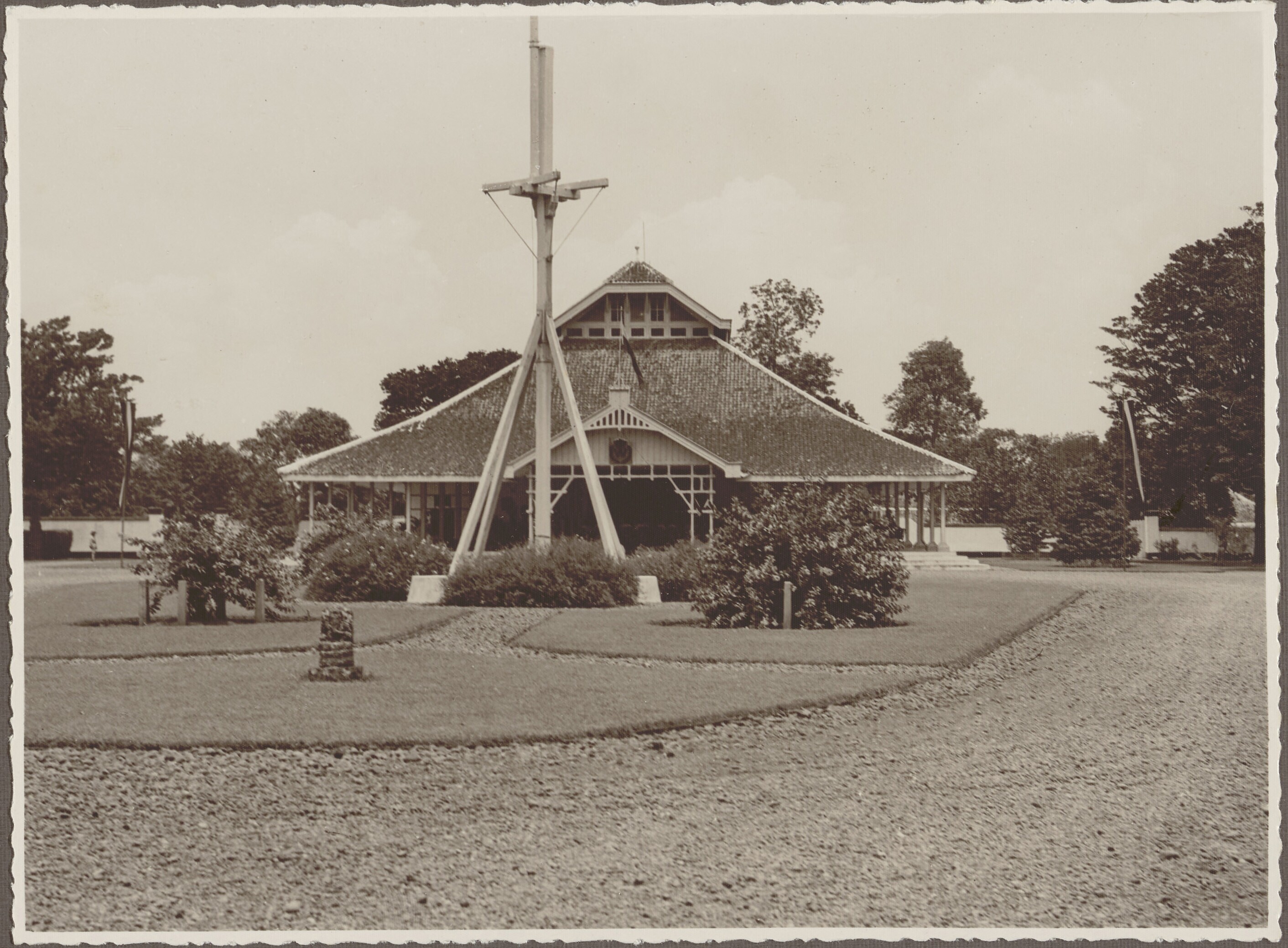 Group portrait in front of the pavilion of the 'Nede...
