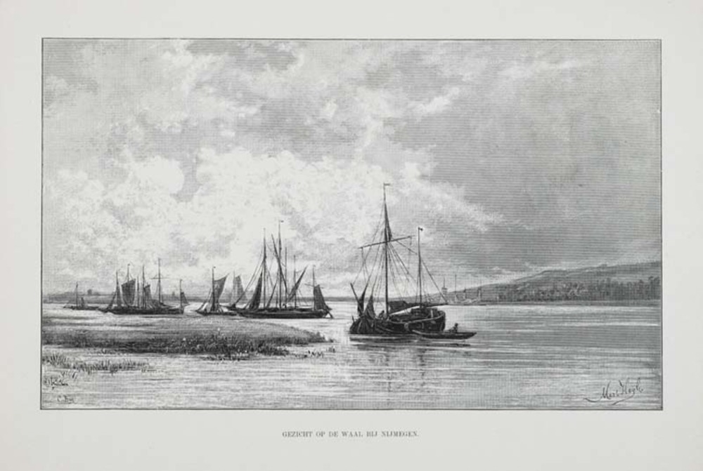 Schepen op de Waal bij Nijmegen