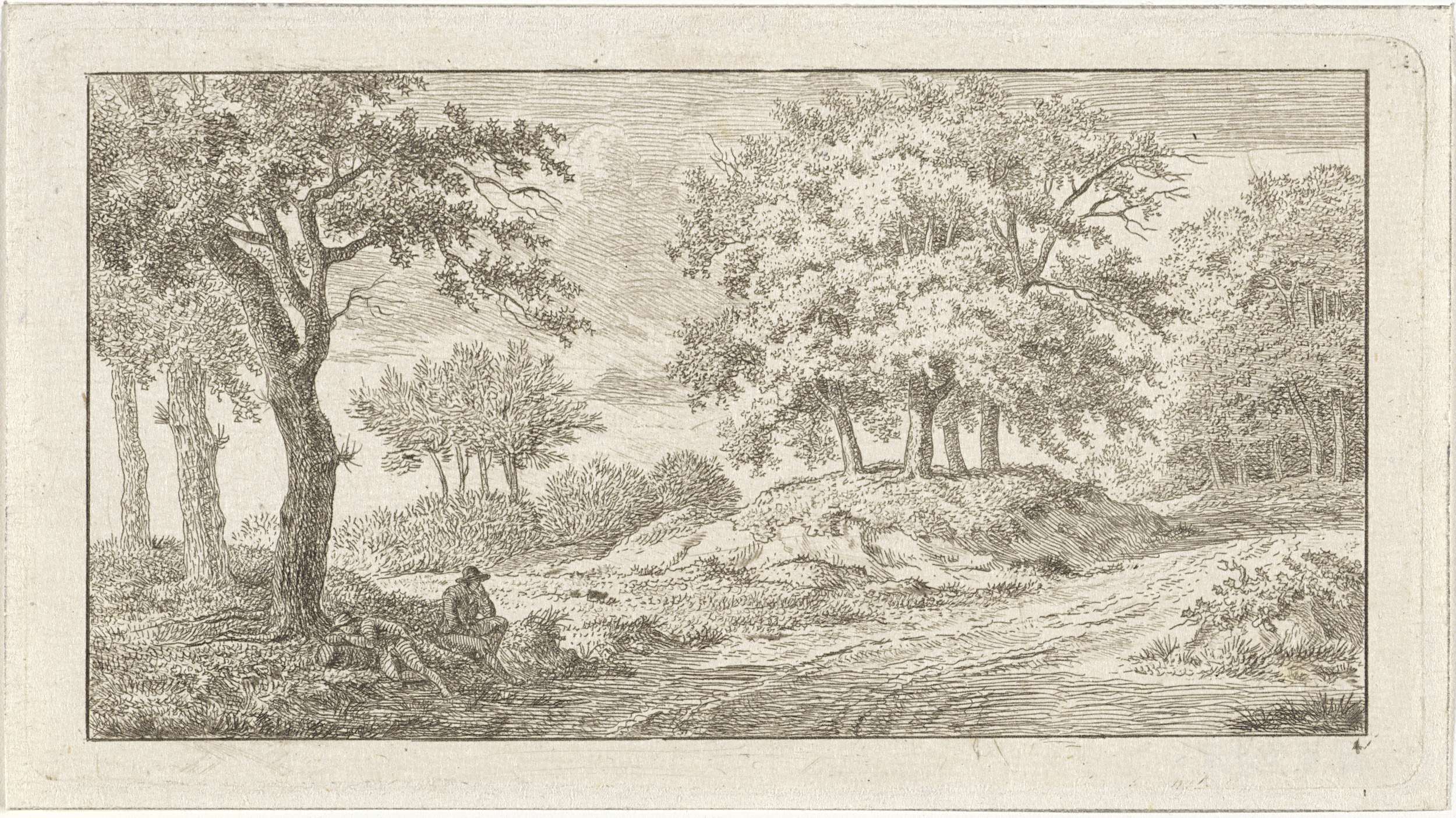 Twee rustende figuren naast een bospad