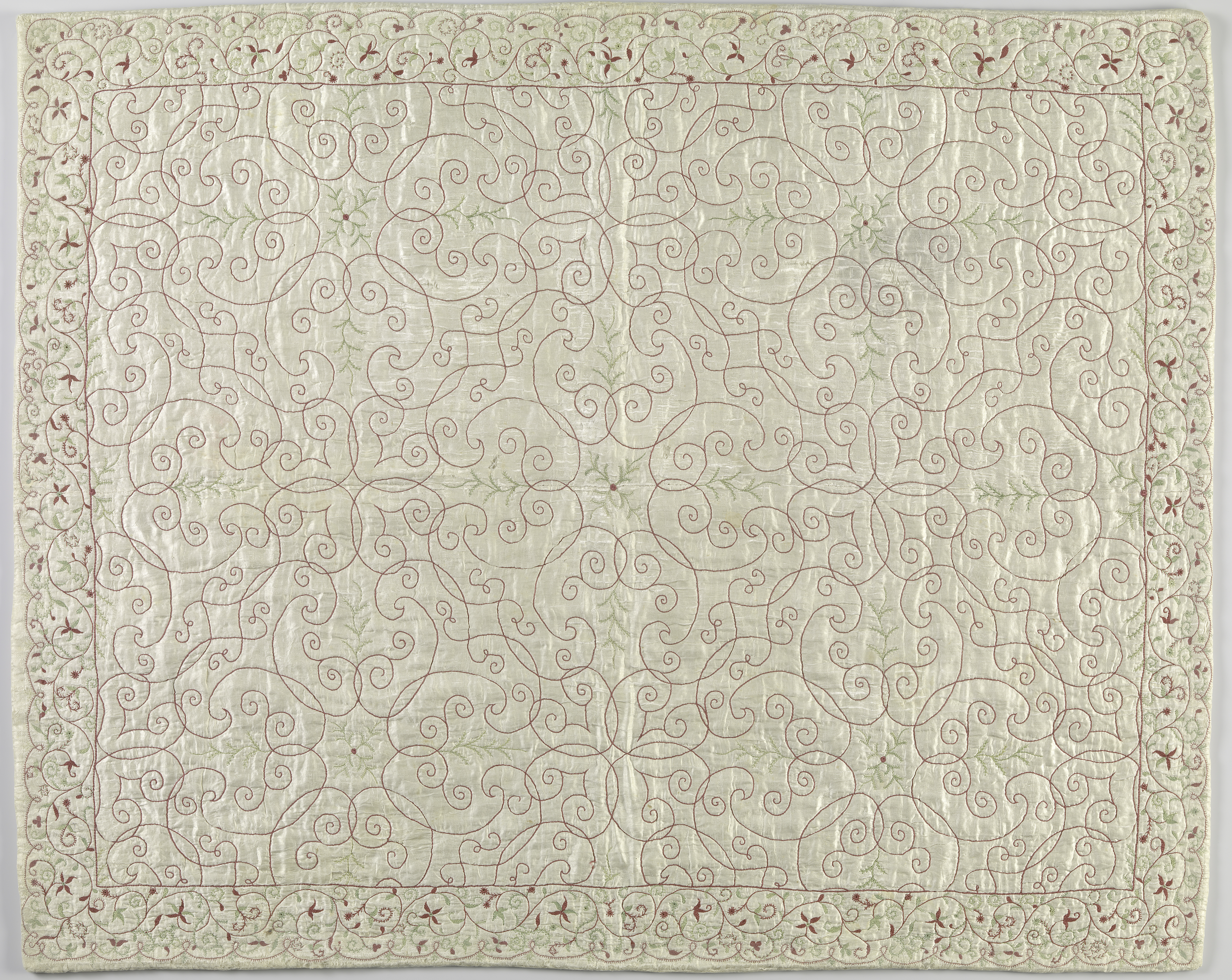 Deken met bloemmotieven, doorgestikt in ruitpatroon