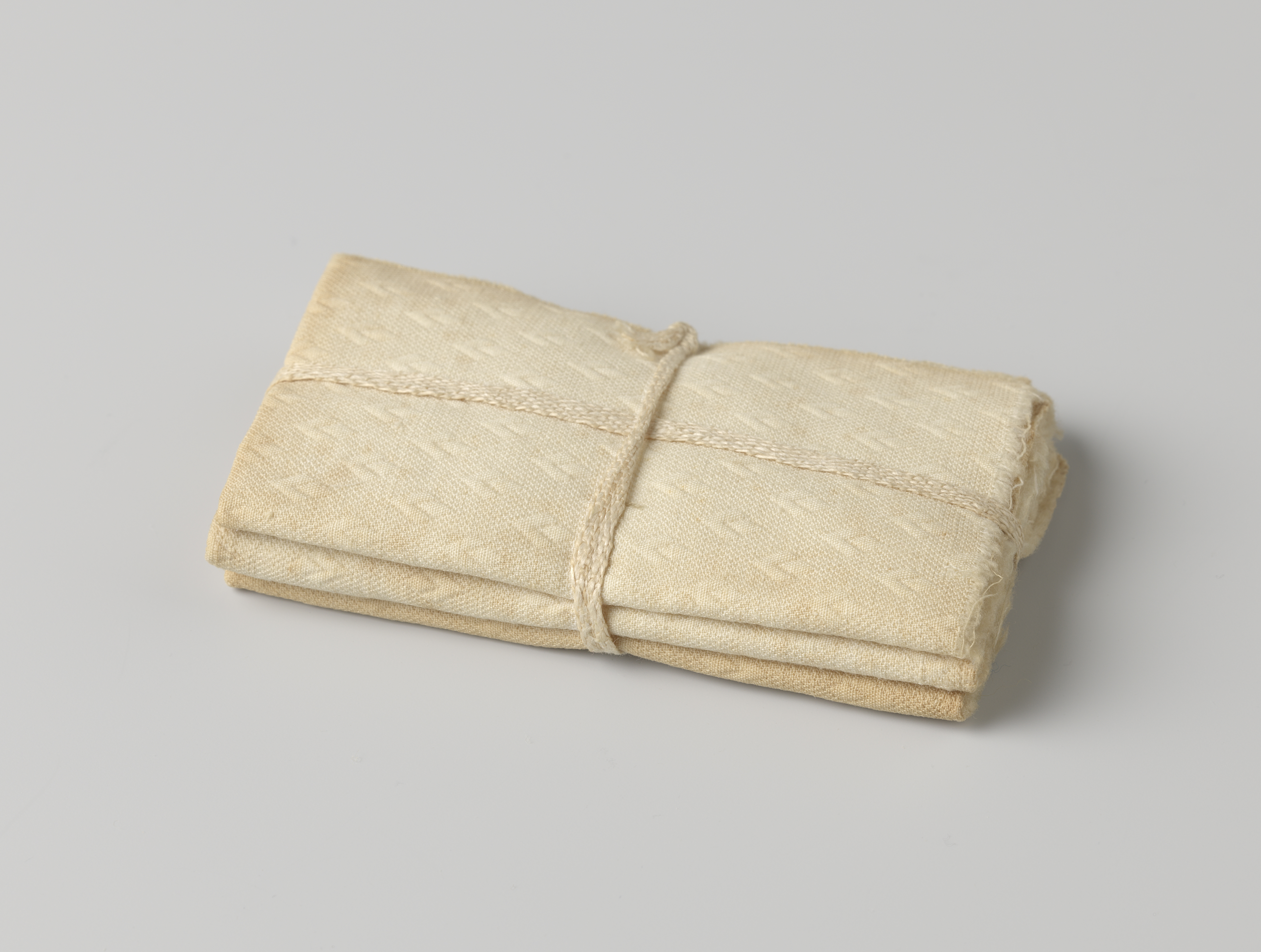 Stapel van drie dekens, samengebonden met band