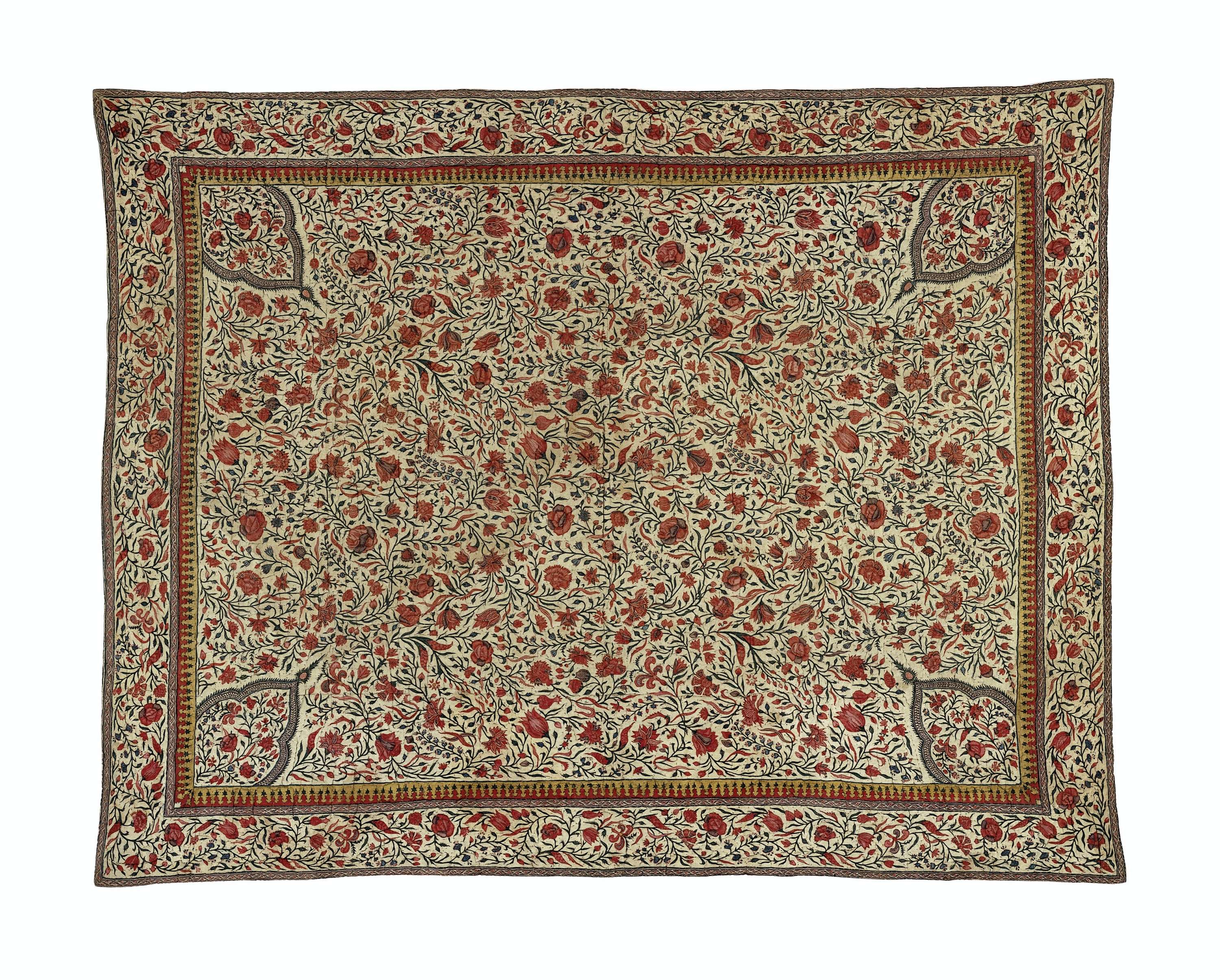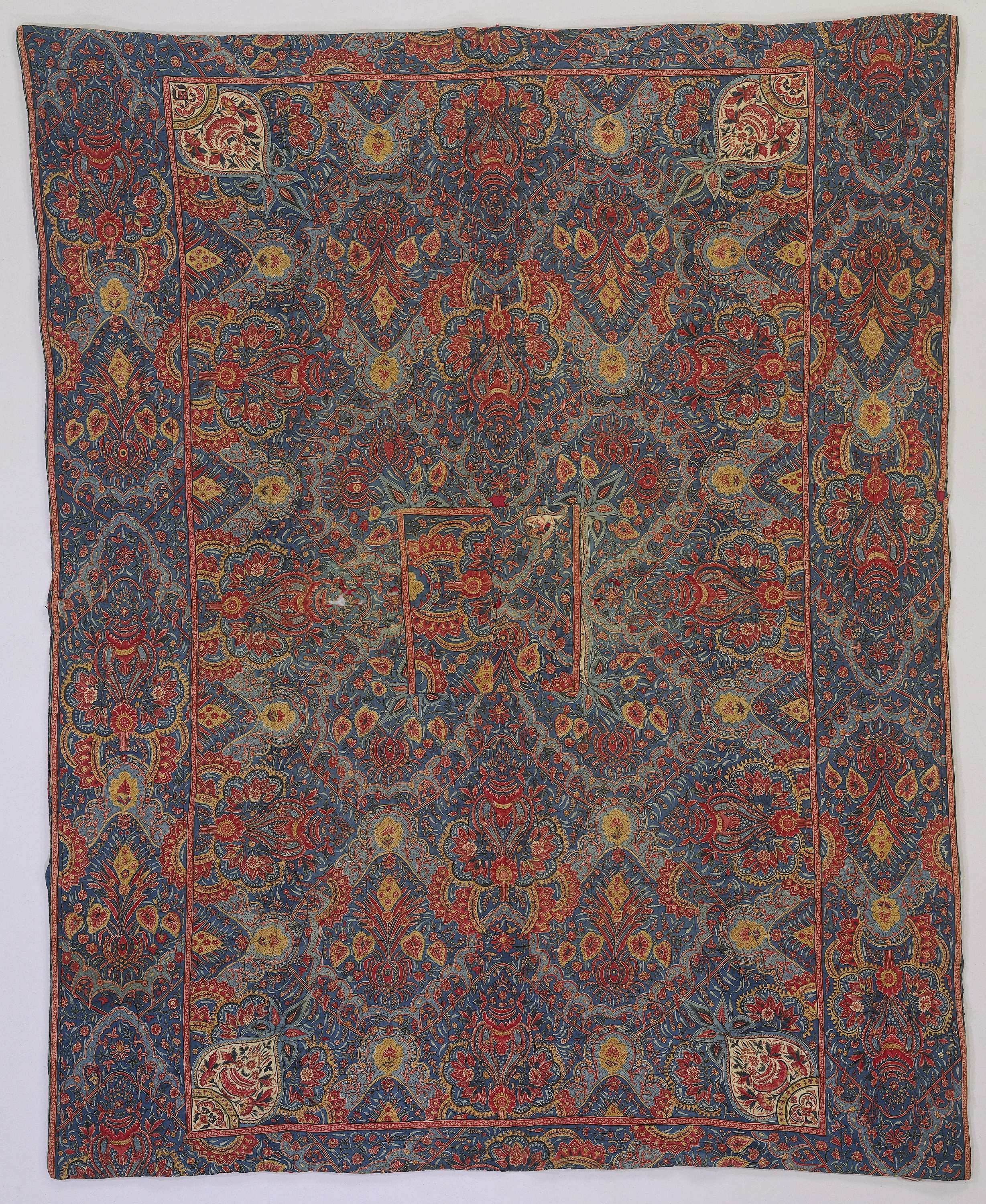Deken, vervaardigd van sits, beschilderd met een gol...