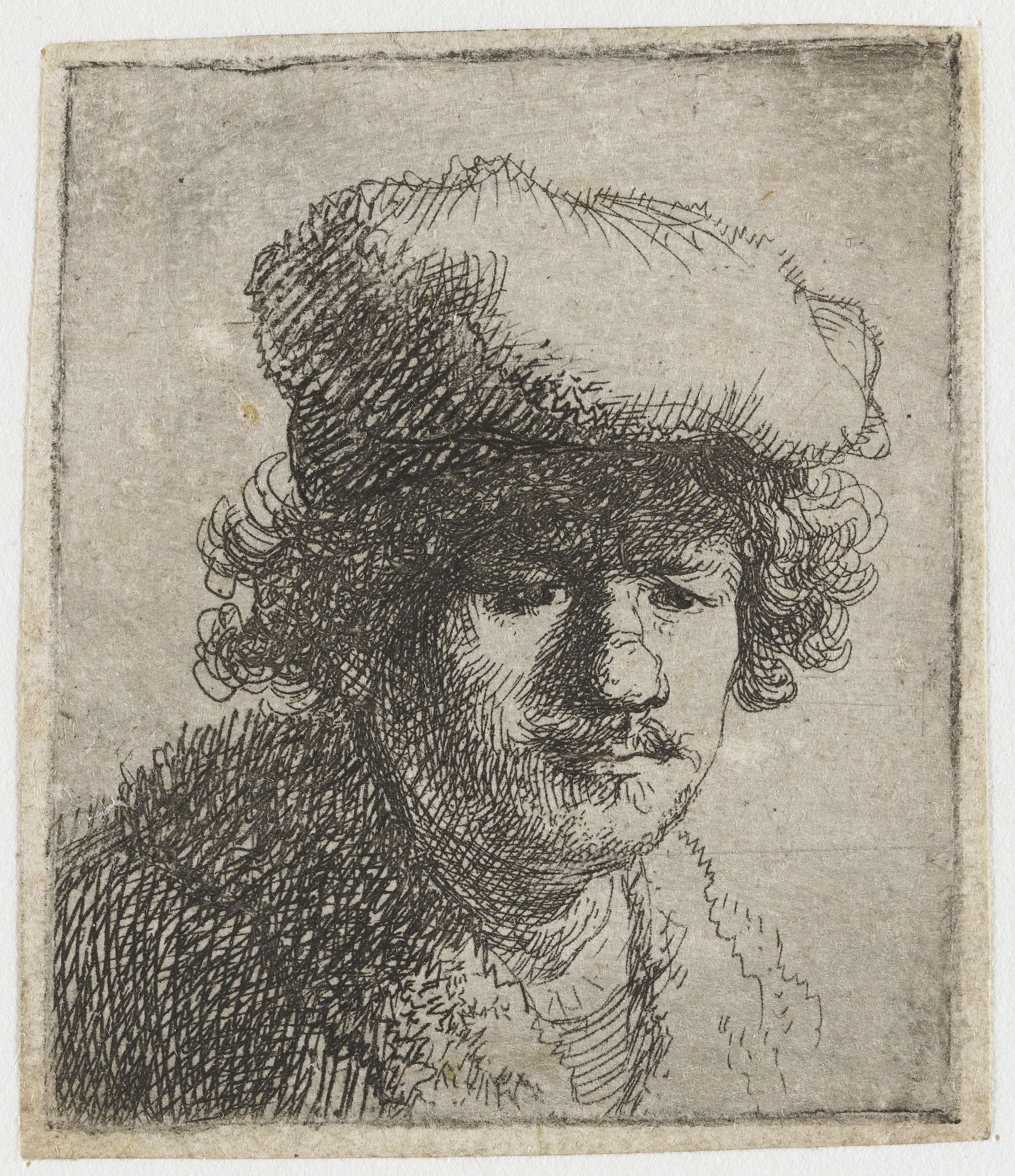 Self-portrait in a slant fur cap: bust
