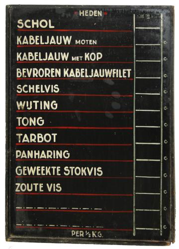 Verkoop prijzen bord voor vis. Zeegers Vishandel Ema...