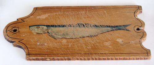 Langwerpig haringplankje met een geschilderde afbeel...