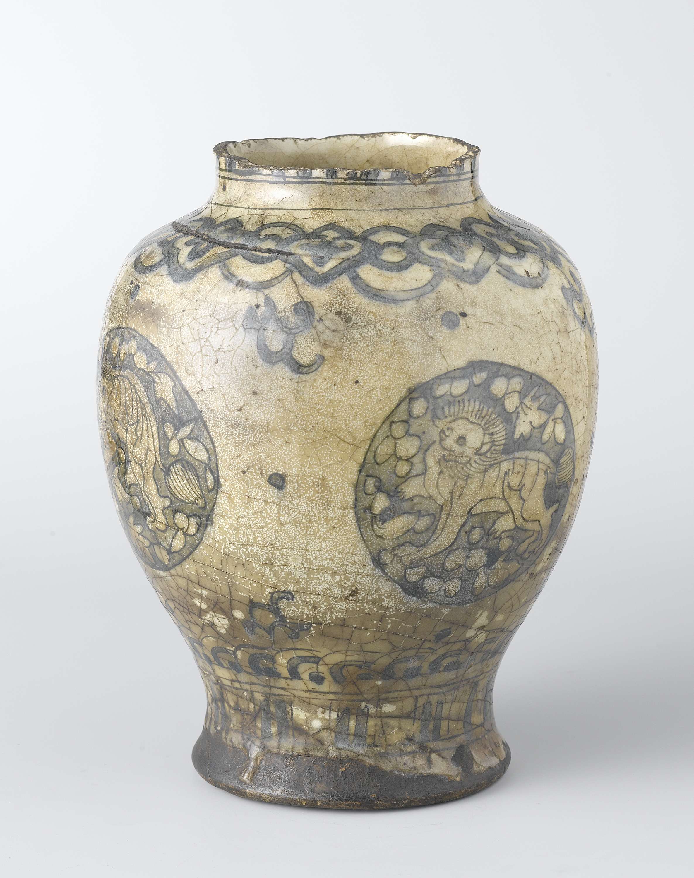 Round-bodied jar with oxen, scrolls and geometric pa...
