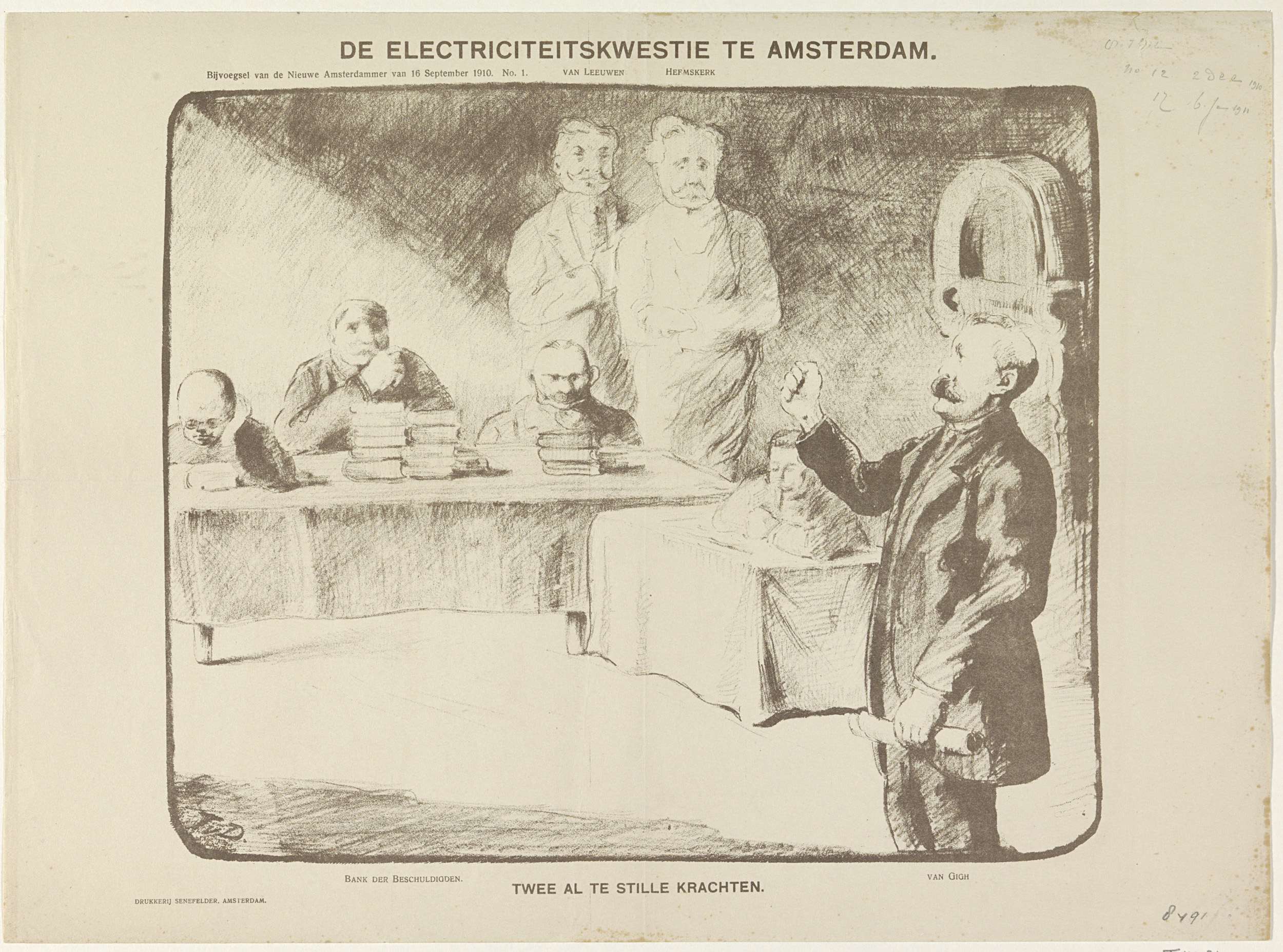 Spotprent op de electriciteitskwestie te Amsterdam, ...