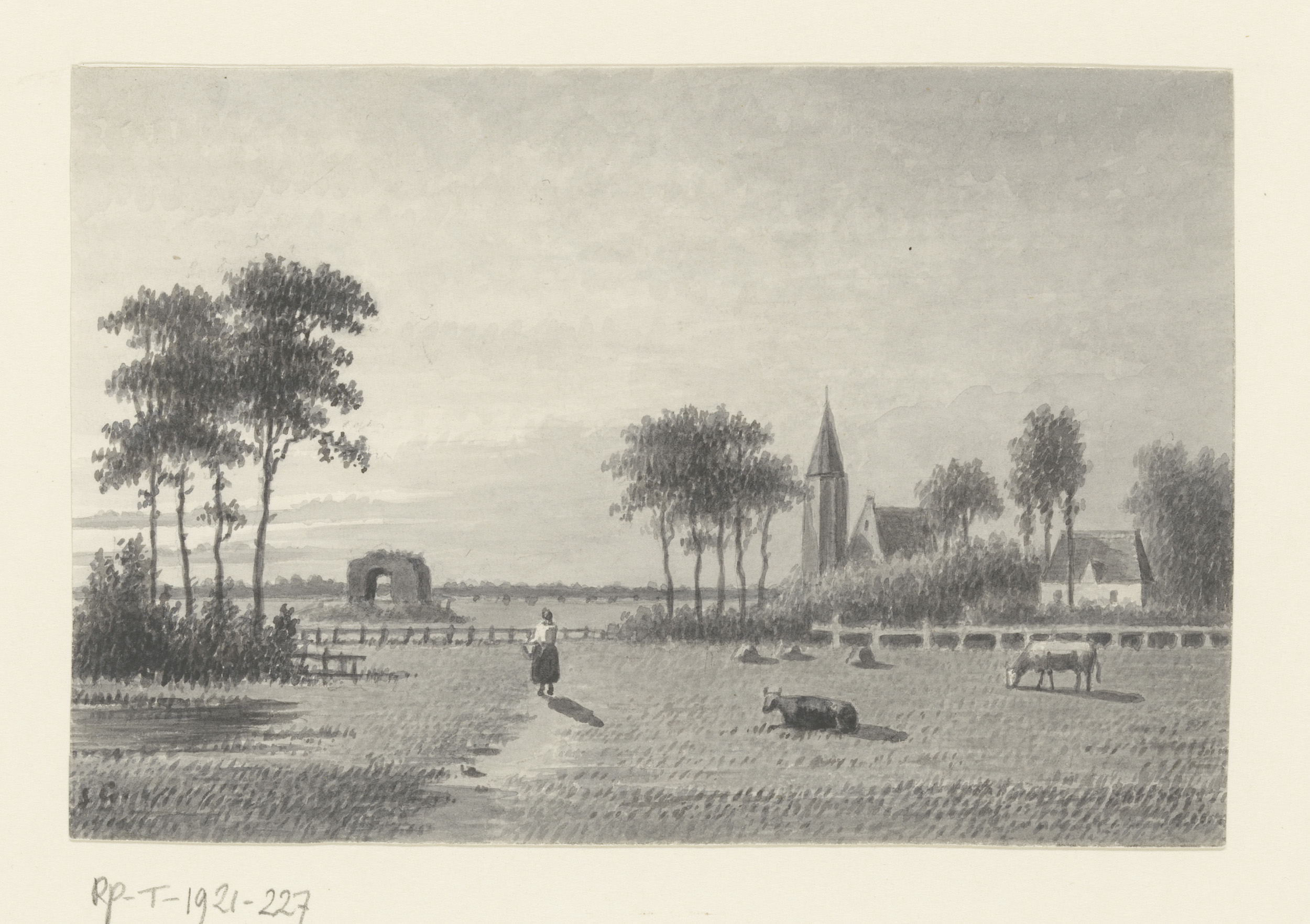 Landschap met een gezicht op de ruïnes van Huis ter ...