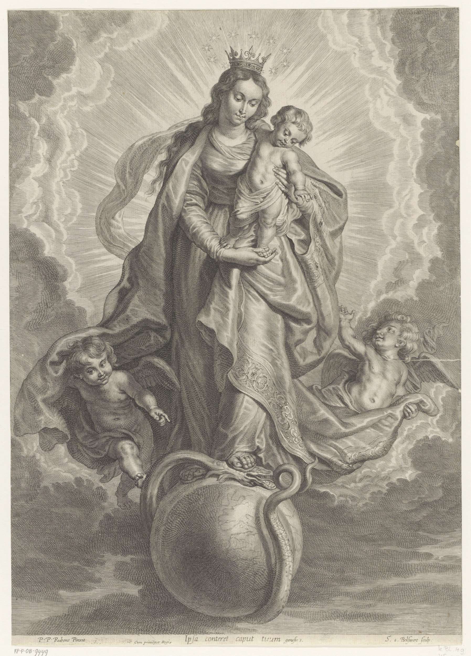Maria met kind op wereldbol, de duivel vertrappend