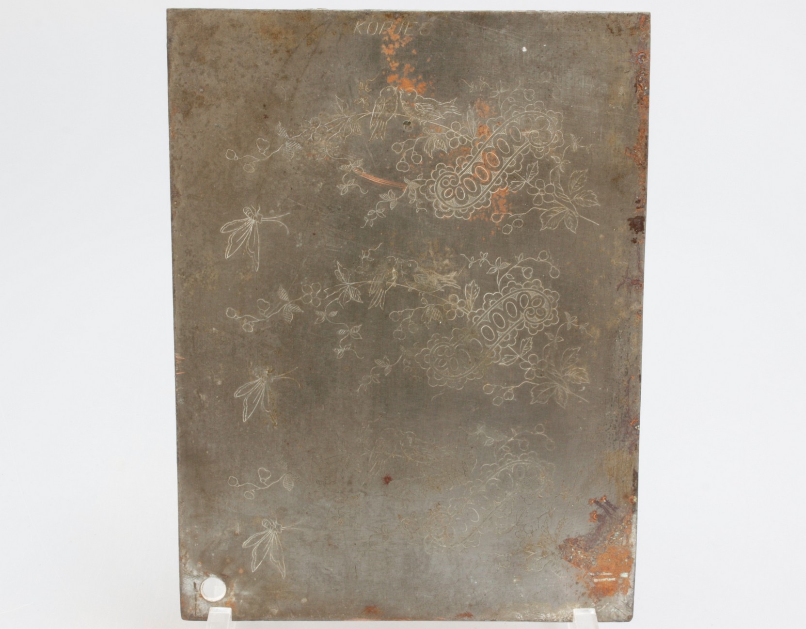 Drukplaat met decors getiteld 'Chrysantheme' / 'Tecla'
