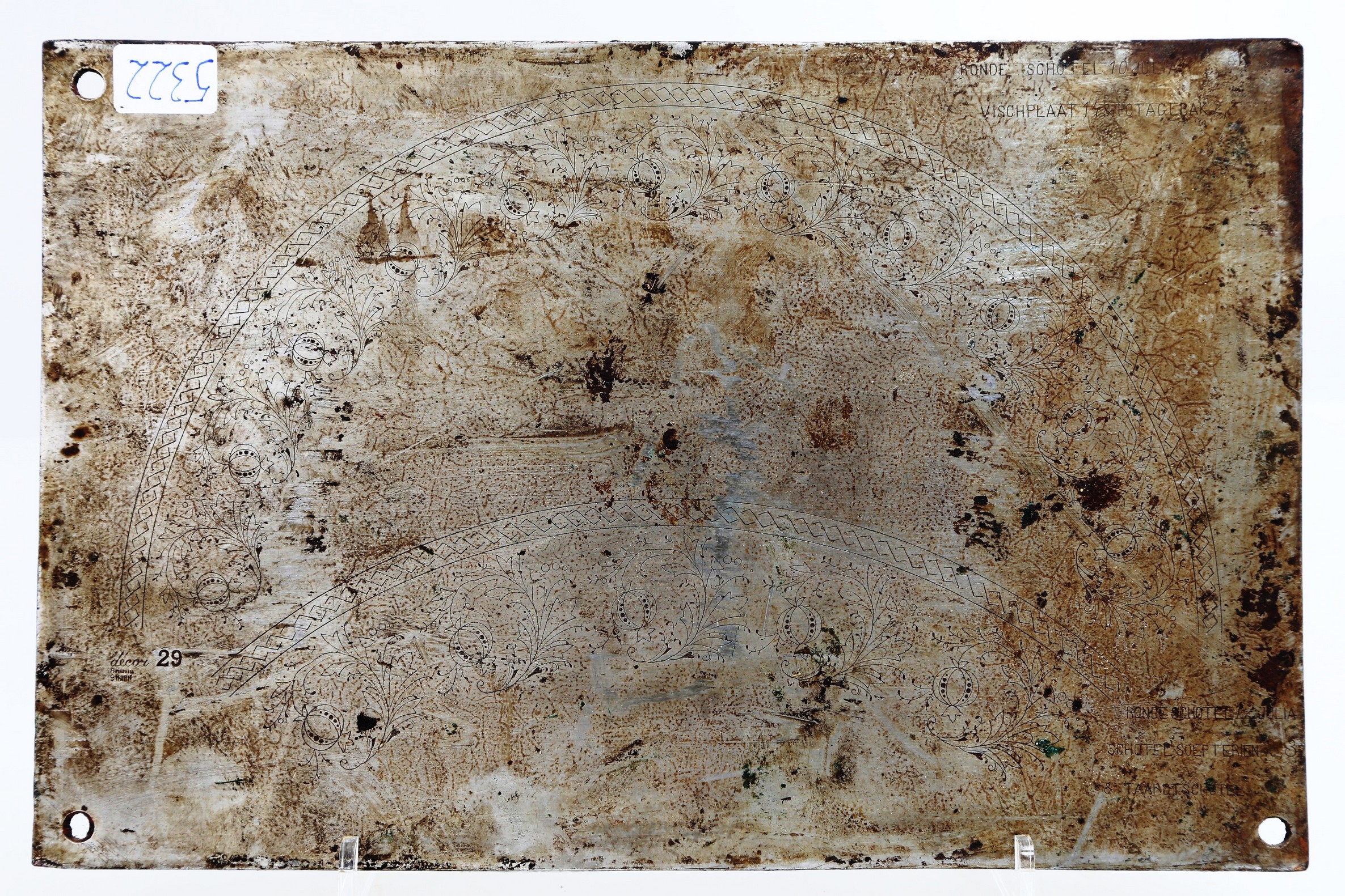 Drukplaat met decors getiteld 'Schwiebel' / 'Decor 29'