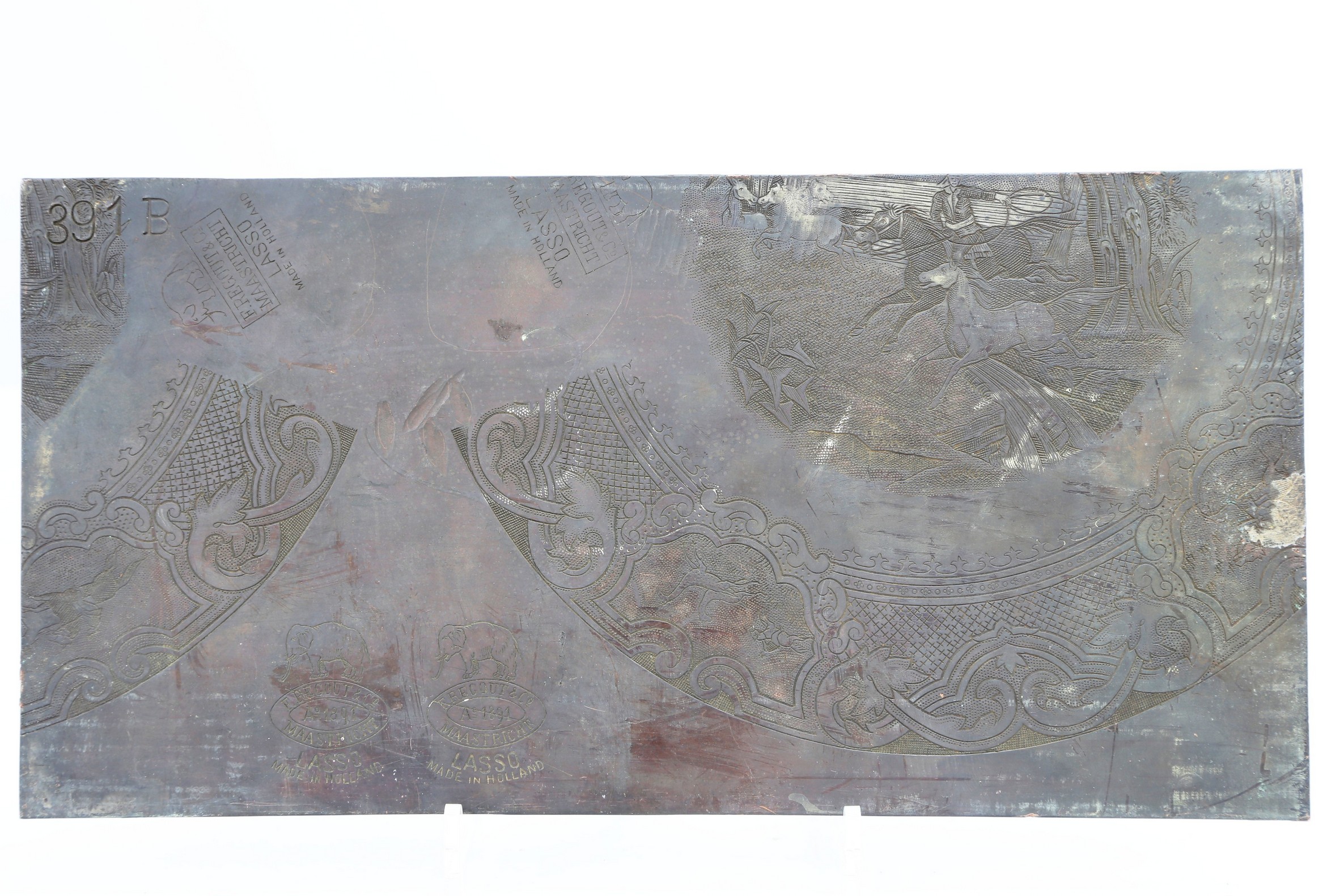 Drukplaat met decors getiteld 'Lasso fragment' / 'On...