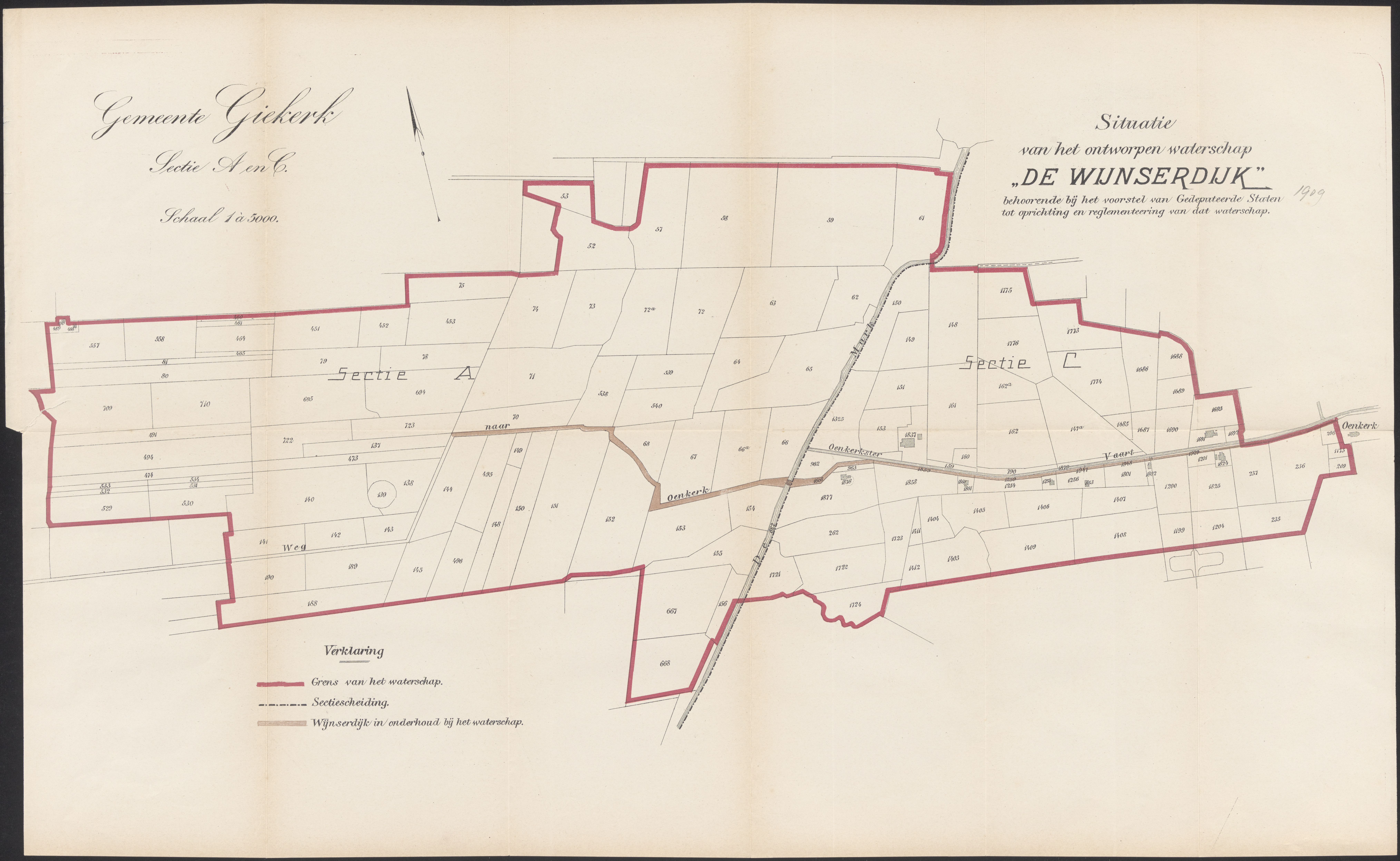 Situatie van het ontworpen waterschap "De Wijnserdij...