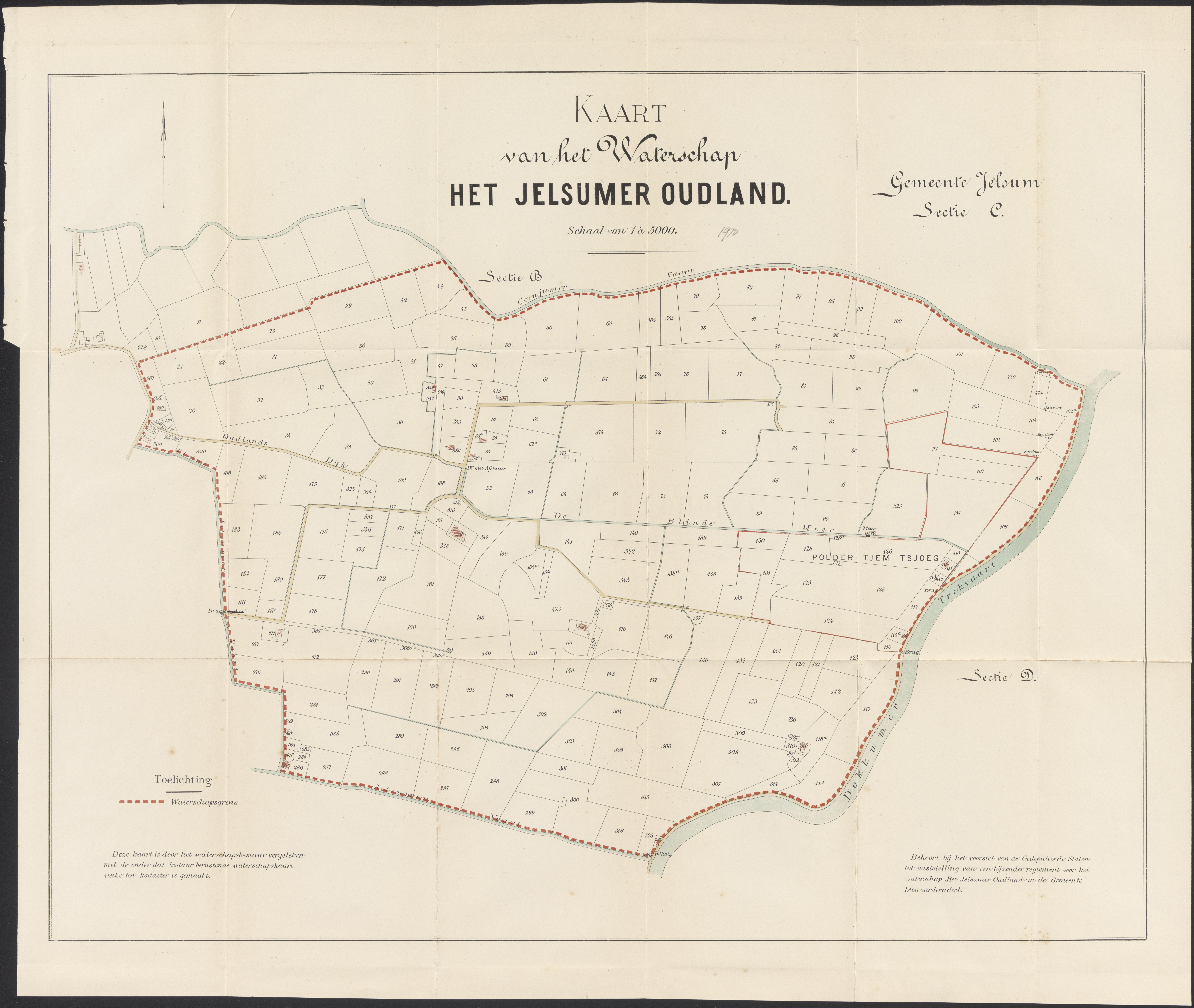 Kaart van het ontworpen Waterschap "De Langesloot".