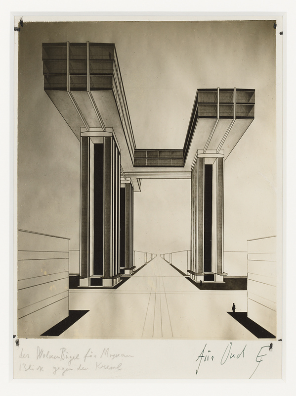 Foto van Lissitzky van zijn ontwerp 'Der Wolkenbügel...