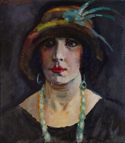 Vrouw met hoed en groene ketting