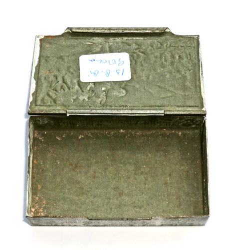 Luciferdoos. Langwerpige metalen lucifersdoos. Ges...