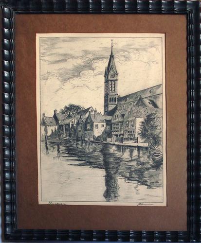 Potloodtekening. Vleersteeg Vlaardingen.