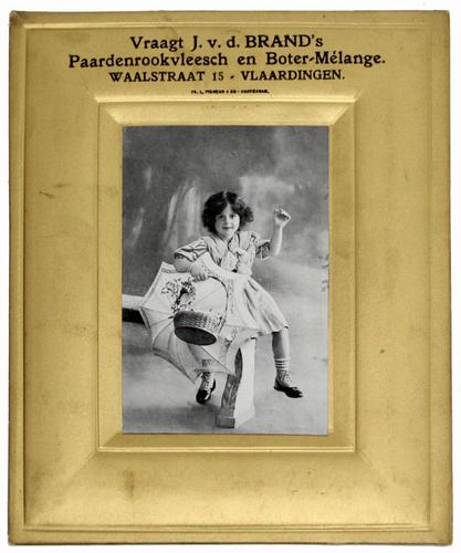 J. v.d. Brand, reclame uiting. Kartonnen goudkleuri...